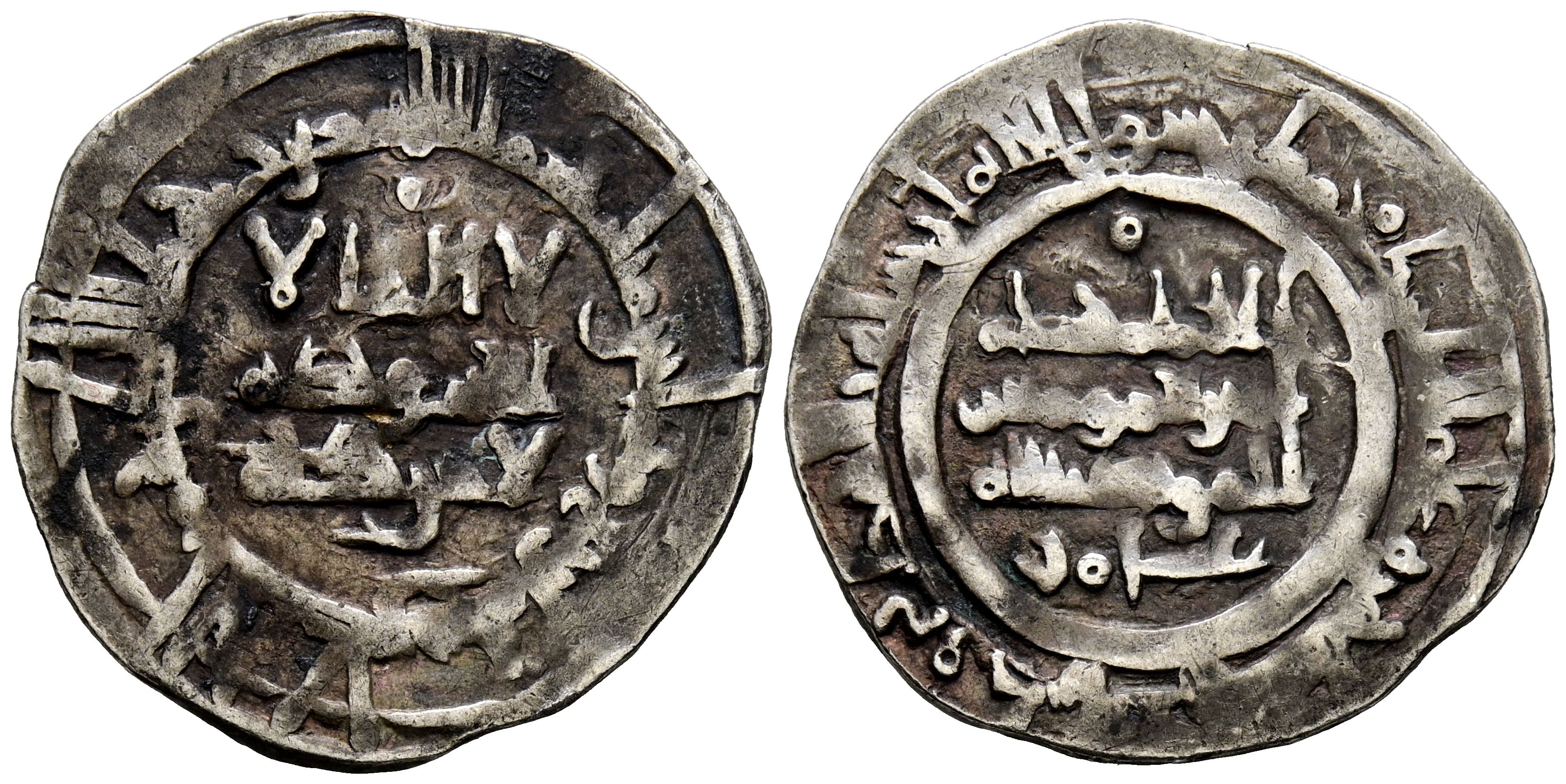 CALIFATO DE CÓRDOBA, Hisham II. (Ar. 3,26g/23mm). 384H. al-Ándalus / الاندلس. (Vives 519). Citando a 'Amir en IIA. MBC. Pátina oscura.