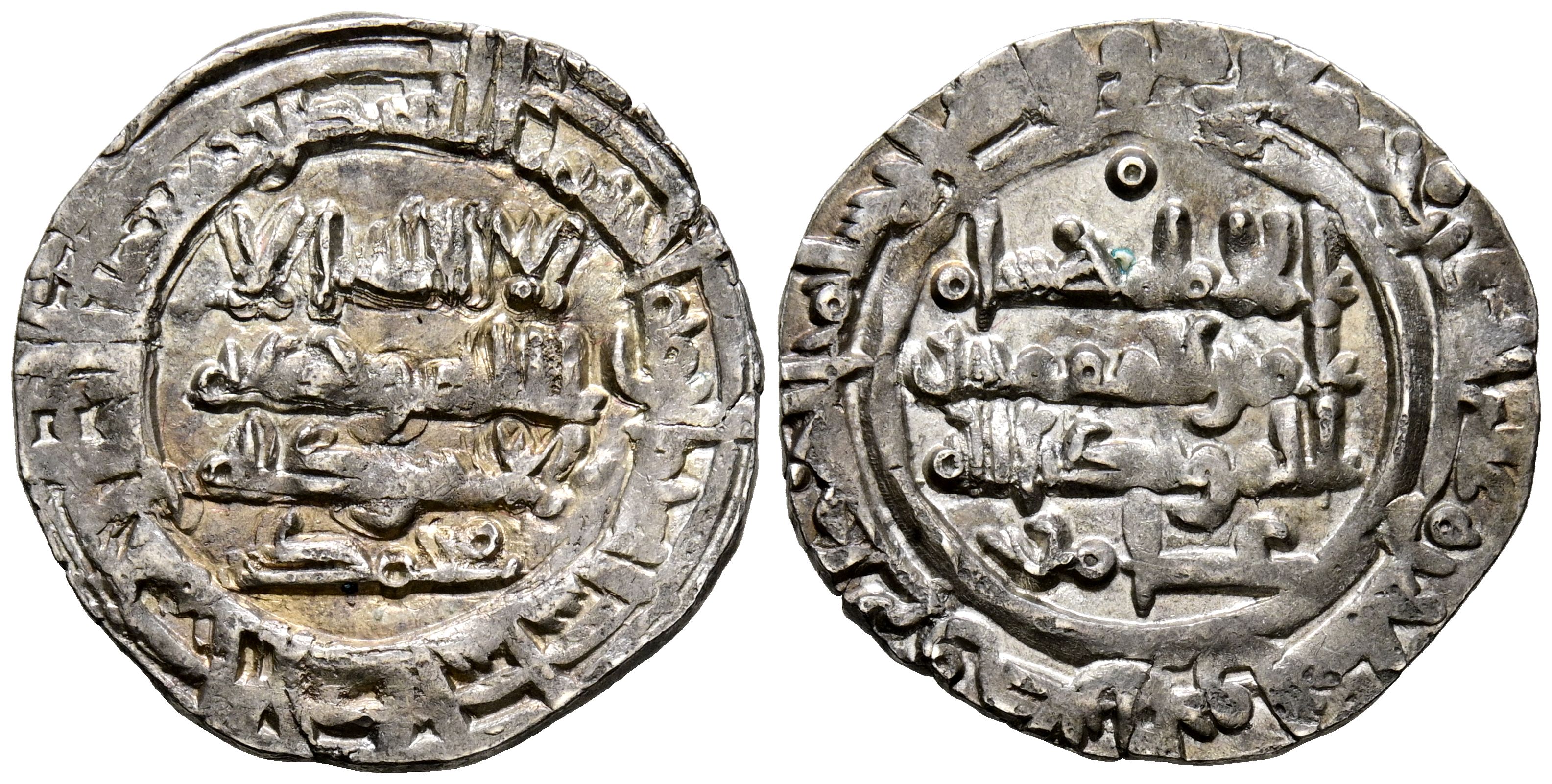 CALIFATO DE CÓRDOBA, Hisham II. Dirham. (Ar. 2,89g/22mm). 388H. al-Ándalus / الاندلس. (Vives 538; R. Frochoso 388.134). Citando a Muhammad en IA y Amir en IIA. MBC. Tono.