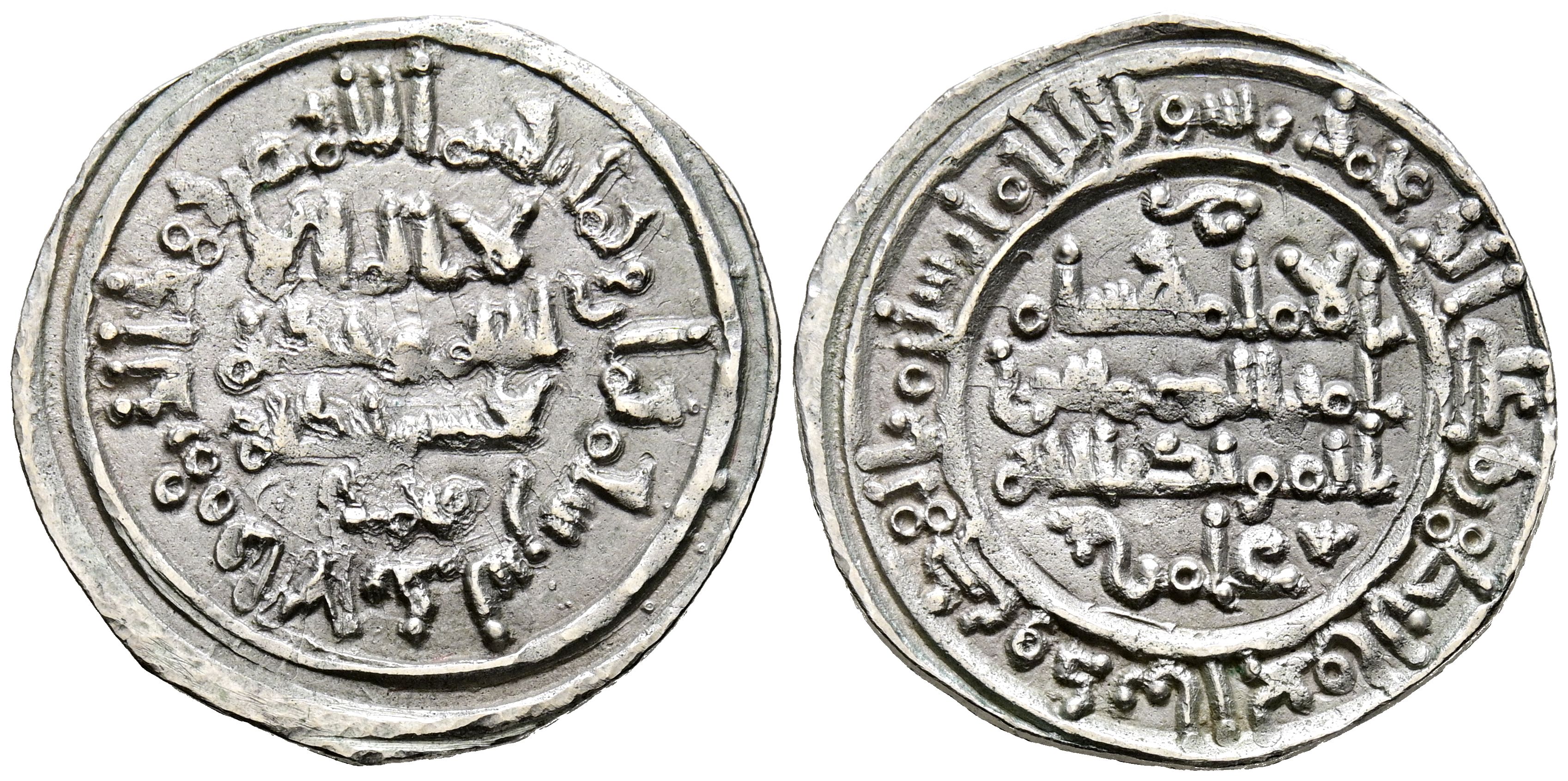 CALIFATO DE CÓRDOBA, Hisham II. Dirham. (Ar. 3,02g/24mm). 388H. al-Ándalus / الاندلس. (Vives 538; R. Frochoso 388.51). Citando a Muhammad en IA y Amir en IIA. MBC+.