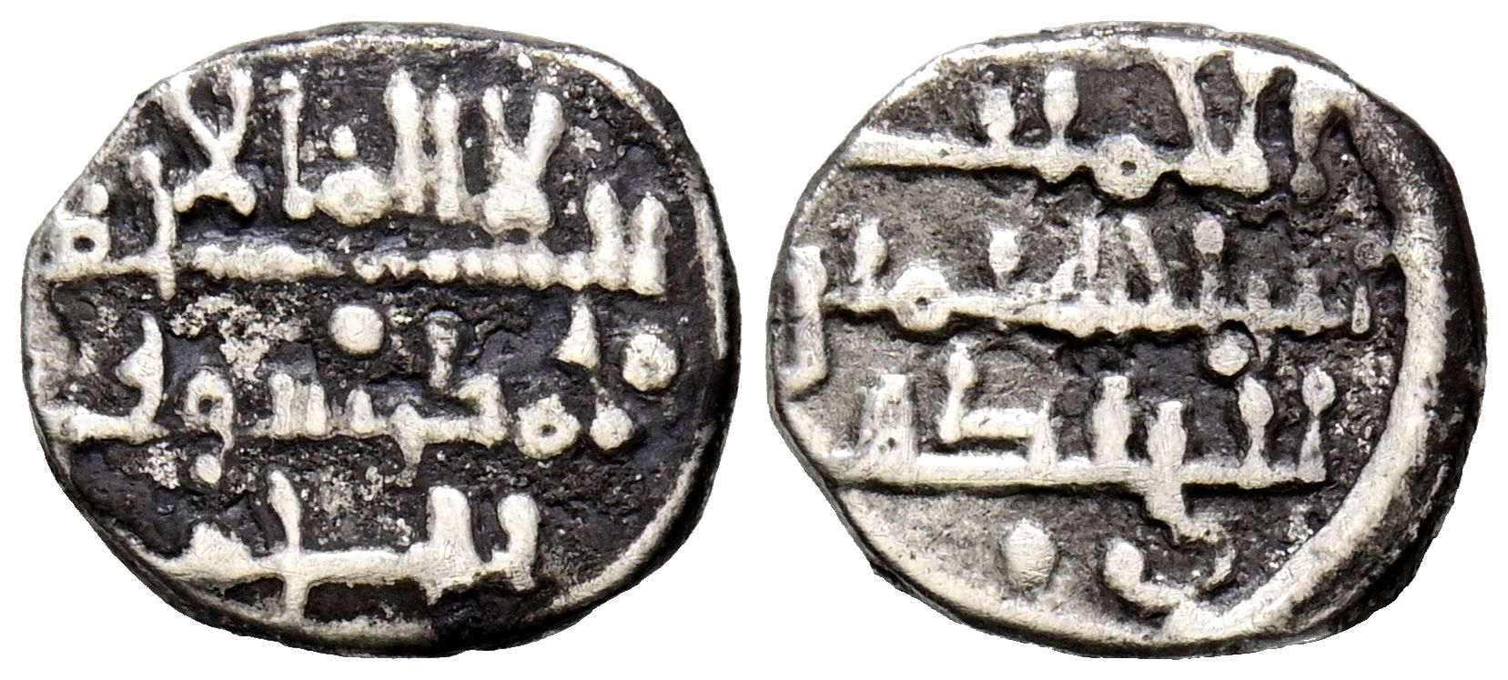 ALMORÁVIDES. Ibrahim Ben Abu Bakr Ben 'Umar (¿1068-1077?). Quirate. (Ar. 0,89g/11mm). S/D. (Vives no cita; Hazard no cita; Benito AB1). Anv: 'Shahadah' en cuatro líneas. Rev: الامير/ ابرا هيم بن / ابي بكـر. MBC. Muy rara.Aun siendo hijo de Abu Bakr, poco se conoce a través de las fuentes sobre este personaje. En la literatura numismática se recogen una serie de Dinares acuñados por él en Segilmesa entre los años 462-467H, mientras que este es el único tipo de quirate que se conoce de este gobernante y que fue publicado por Benito de los Mozos (Gaspariño 2017, 83-86) y que presenta las mismas características que aquellos emitidos en nombre de su padre.
