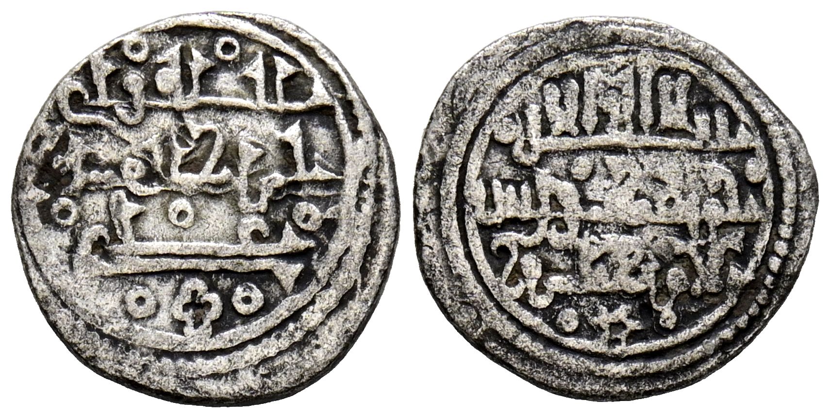 ALMORÁVIDES, Ali ben Yusuf con Tashfin como herededro (533-537/1106-1143). Quirate. (Ar. 0,72g/12mm). S/D. (Vives 1820; Medina 141; Benito Ch13). Anv: 'Shahada' en tres lineas y mención al heredero. Rev: Presenta a Ali con titulo Amir al-Muslimin y en la parte superior las expersión: الله ولي (Dios es el guardian). MBC.
