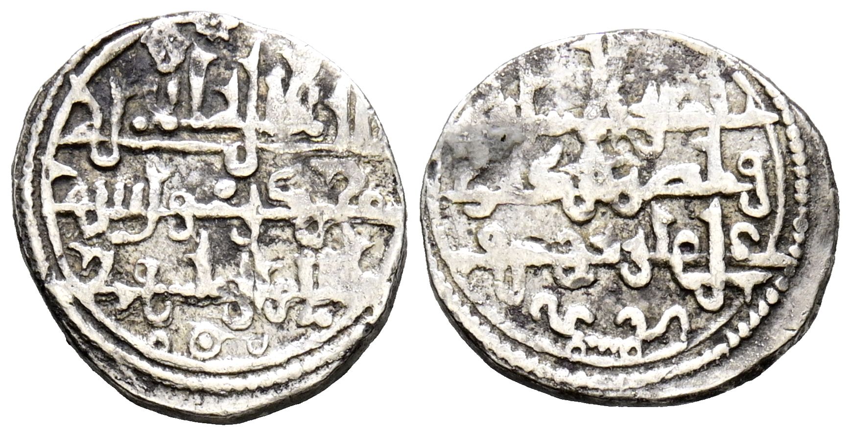 ALMORAVIDES, Ali ben Yusuf y el Amir Tashfin (533-537H). Quirate. (Ar. 0,90g/12mm). S/D.(Benito Cj3). Anv: 'Shahadah' en tres líneas, abajo cita al heredero Tashufin. Rev: Divido en tres líneas, presenta a Ali con títulos de Amir al-Muslimin y Nasir al-Din. MBC-.