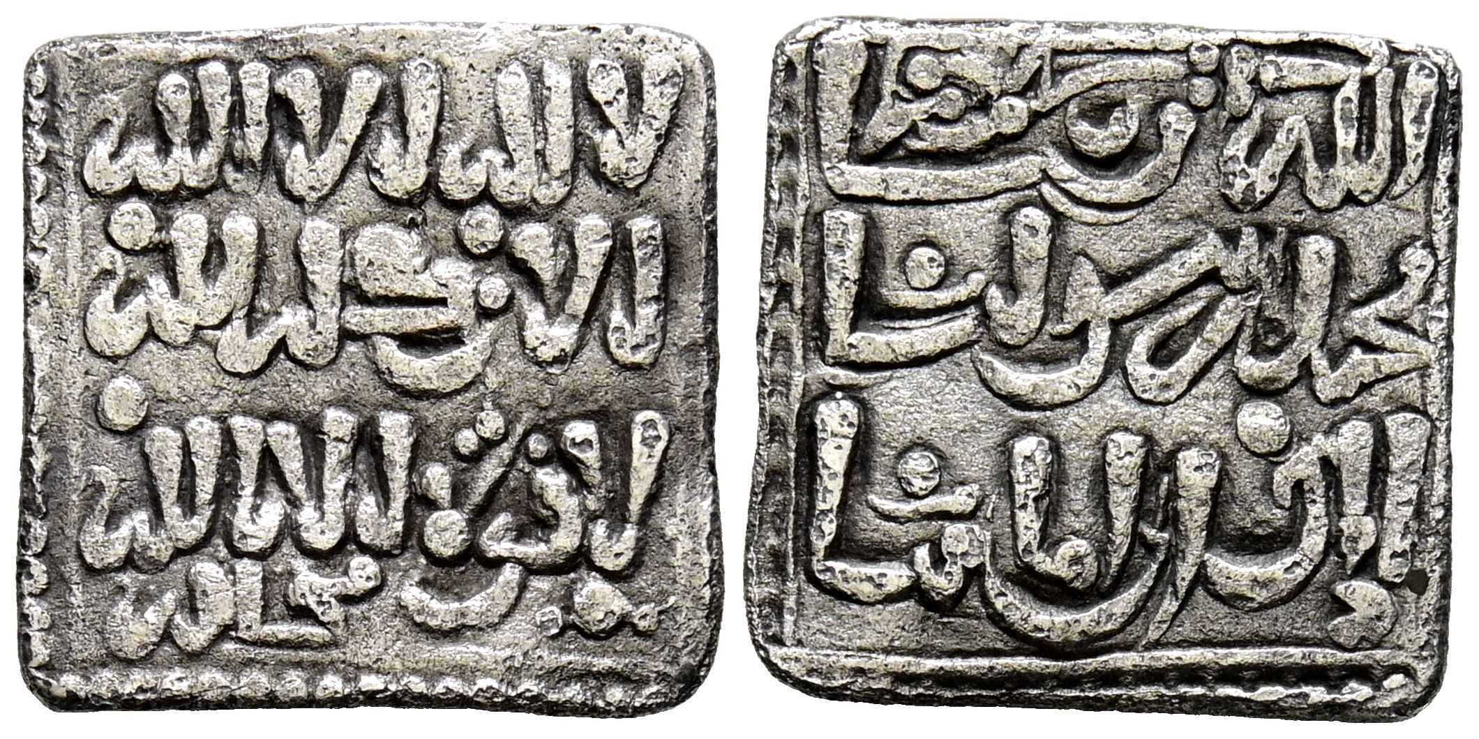 ALMOHADES, Anónimo a nombre del Imam al-Mahdi. Dirham. (Ar. 1,40g/14mm). Biŷāya (Bugia) / بجاية (Vives 2100; Hazard 1085). MBC. Porosidades. Escasa.La falta de peso de esta pieza, así como la extraña ejecución de algunas de sus letras, en nuestra opinión, son indicativos que nos hacen pensar que se trate de una copia africana de época.