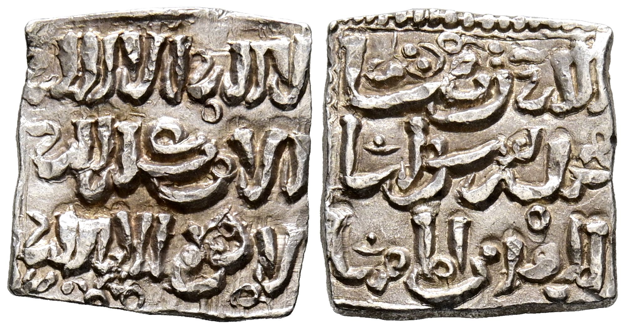 ALMOHADES, Anónima citando a Al-Mahdi. Dirham. (Ar. 1,57g/14mm). S/D. (Vives 2088; Medina 201.a; Hohertz 578, adorno tipo F). Singular adorno en lugar de ceca. EBC.