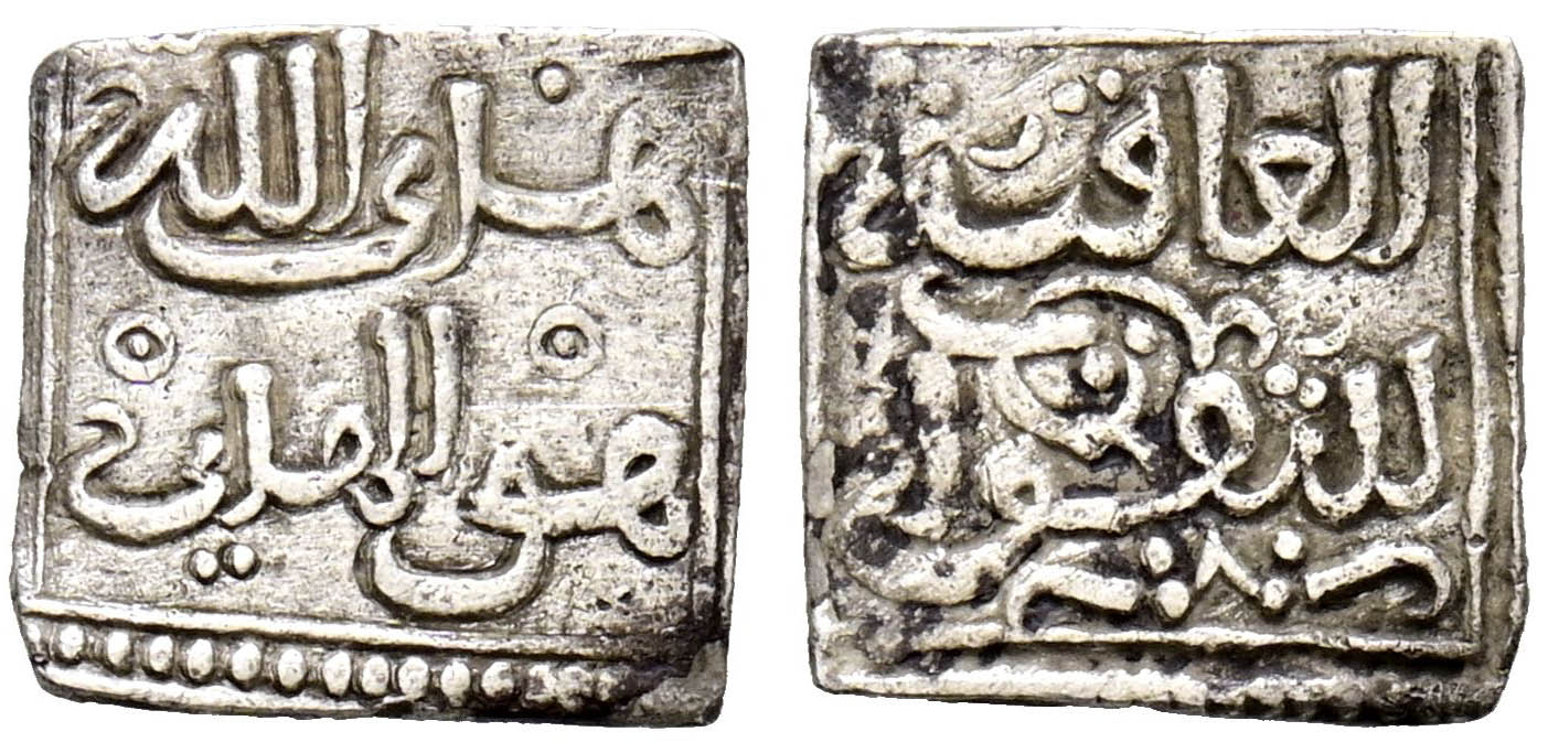 ALMOHADES, Anónimo. 1/4 Dirham. (Ar. 0,38g/9mm). (Vives 2209, como Nazarí; Medina 203a; Hohertz 636). Anv: هدى الله / هو الهدى. (La guía de Allah / es la guía). Rev: العا قبة / التقوا. (La recompensa del más allá / pertenece a los devotos). MBC+. Buena acuñación para este tipo.