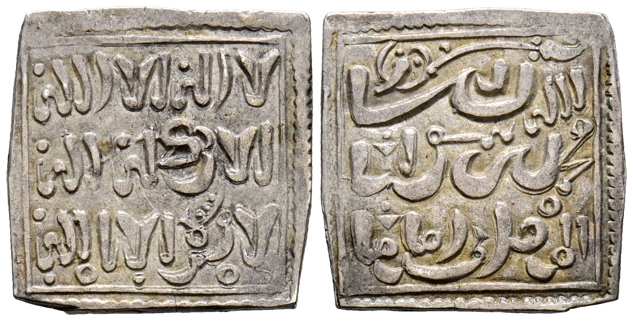 ALMOHADES. Millarés. (Ar. 1,47g/15mm). Siglo XIII. Imitación cristiana de un dirham almoháde a nombre de Al-Mahdi. (Medina 201-bis; Hohertz 651). MBC.