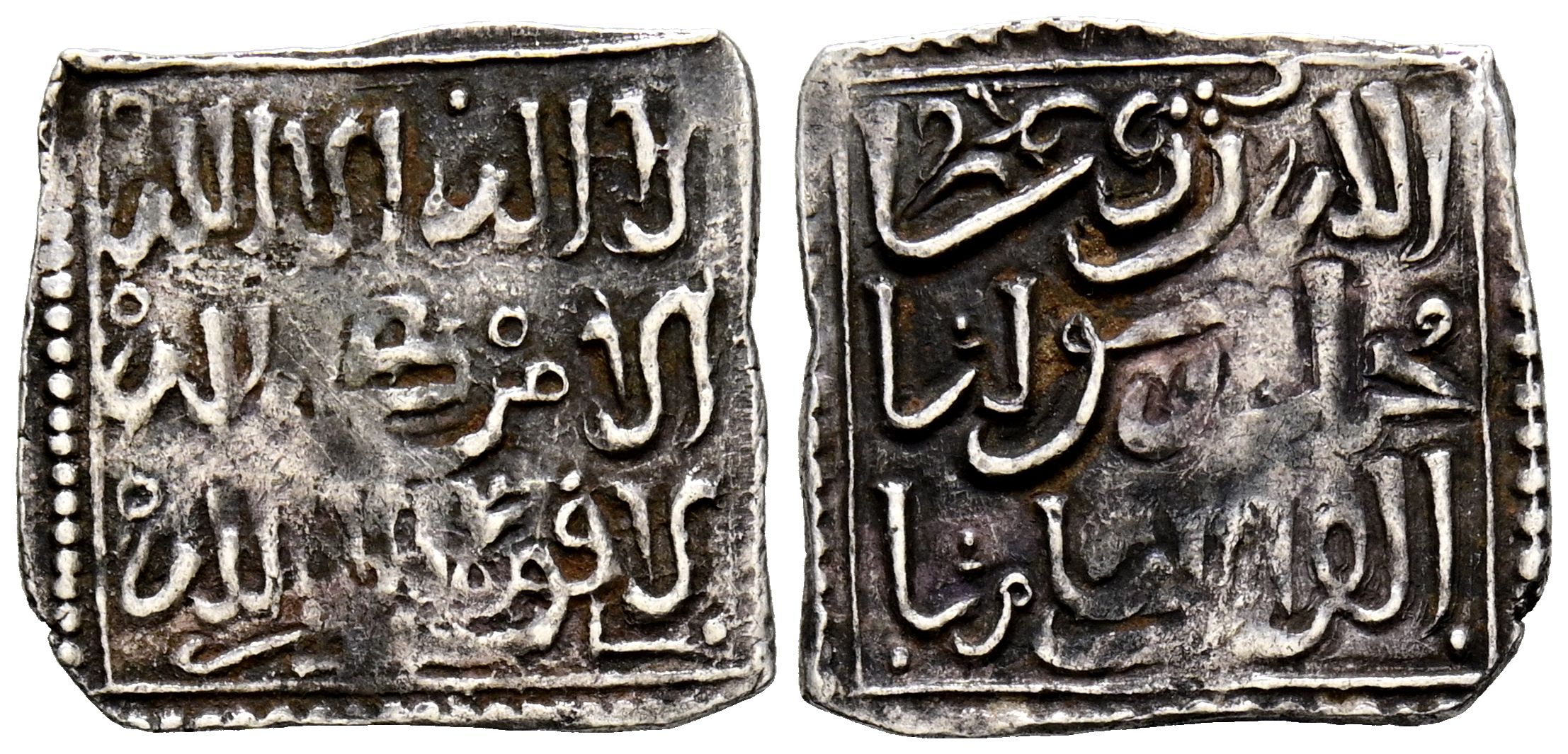 ANTI-ALMOHADES (Meriníes). Anónima. Dirham. (Ar. 0,90g/15mm). Fa/s (Fez) / فا / س. (Hohertz 838c; Hazard 1144). En la última línea de la IIA aparece en lugar de Al-Mahdi, la mención al Corán: 'El Corán es nuestro Iman'. MBC. Raro ejemplar.