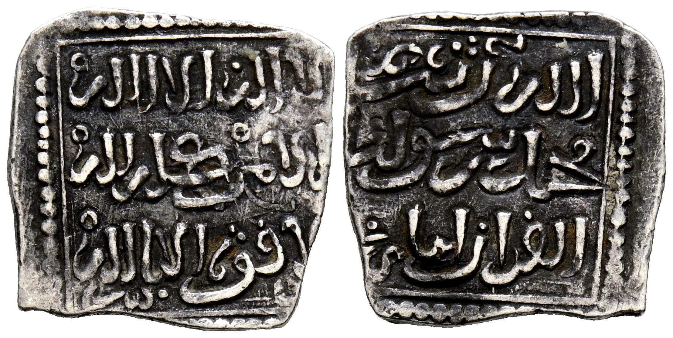 ANTI-ALMOHADES (Meriníes). Anónima. Dirham. (Ar. 0,90g/15mm). Fa/s (Fez) / فا / س. (Hohertz 838c; Hazard 1144). En la última línea de la IIA aparece en lugar de Al-Mahdi, la mención al Corán: 'El Corán es nuestro Iman'. MBC. Raro ejemplar.
