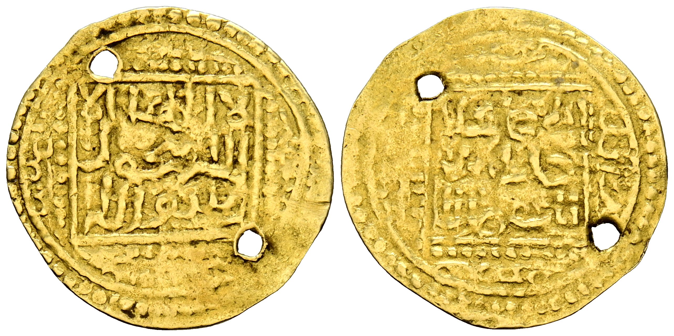 MERINÍES o HAFSÍES. Anónimo. 1/8 dinar. (Au. 0,64g/18). Sin datos visible en los segmentos. BC. Perforaciones.