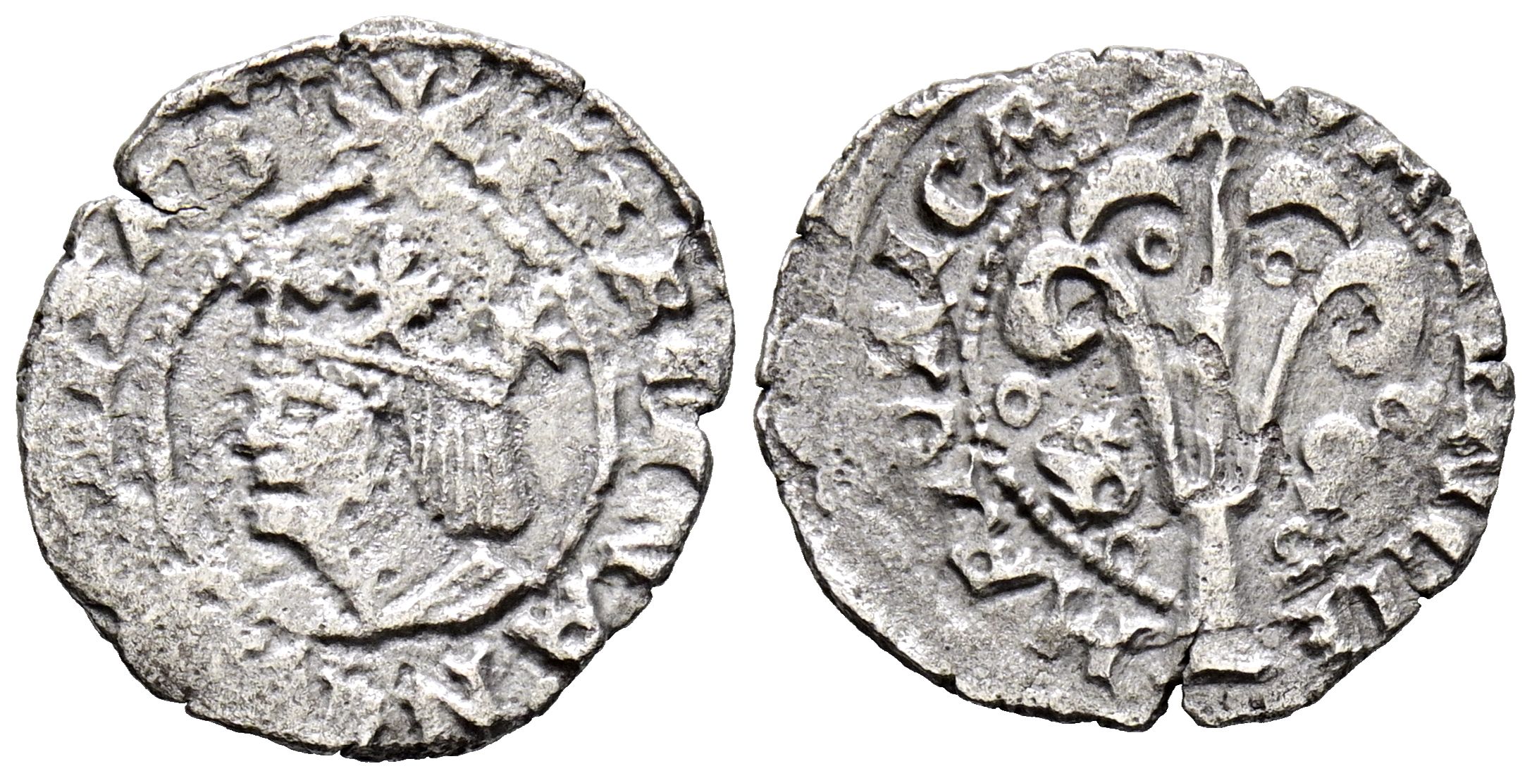 FERNANDO II (1479-1516). Dinero. (Ve. 068g/15mm). Valencia. (Cru.V.S. 1215). Anv: Busto coronado de Fernando II, alrededor leyenda: FERNANDVS ELISAB. Rev: Arbol superado de Cruz entre S-S, alrededor leyenda: VALENCIE-MAIORCA. MBC-.