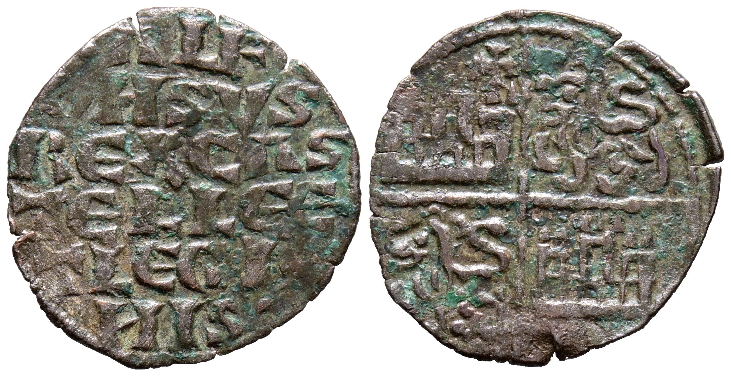 ALFONSO X (1252-1284). Dinero alfonsí ''de la 1º guerra de Granada". (Ve. 0,75g/18mm). Marca de ceca: Cruz. (Imperatrix A10:4.5; FAB-235). Anv: Leyenda en seis líneas: ALF/ONSVS/REX CAS/TELLE E/T LEGIO/NIS. Rev: Castillos y leones con marca de ceca, cruz potentada en 1º cuadrante. MBC.