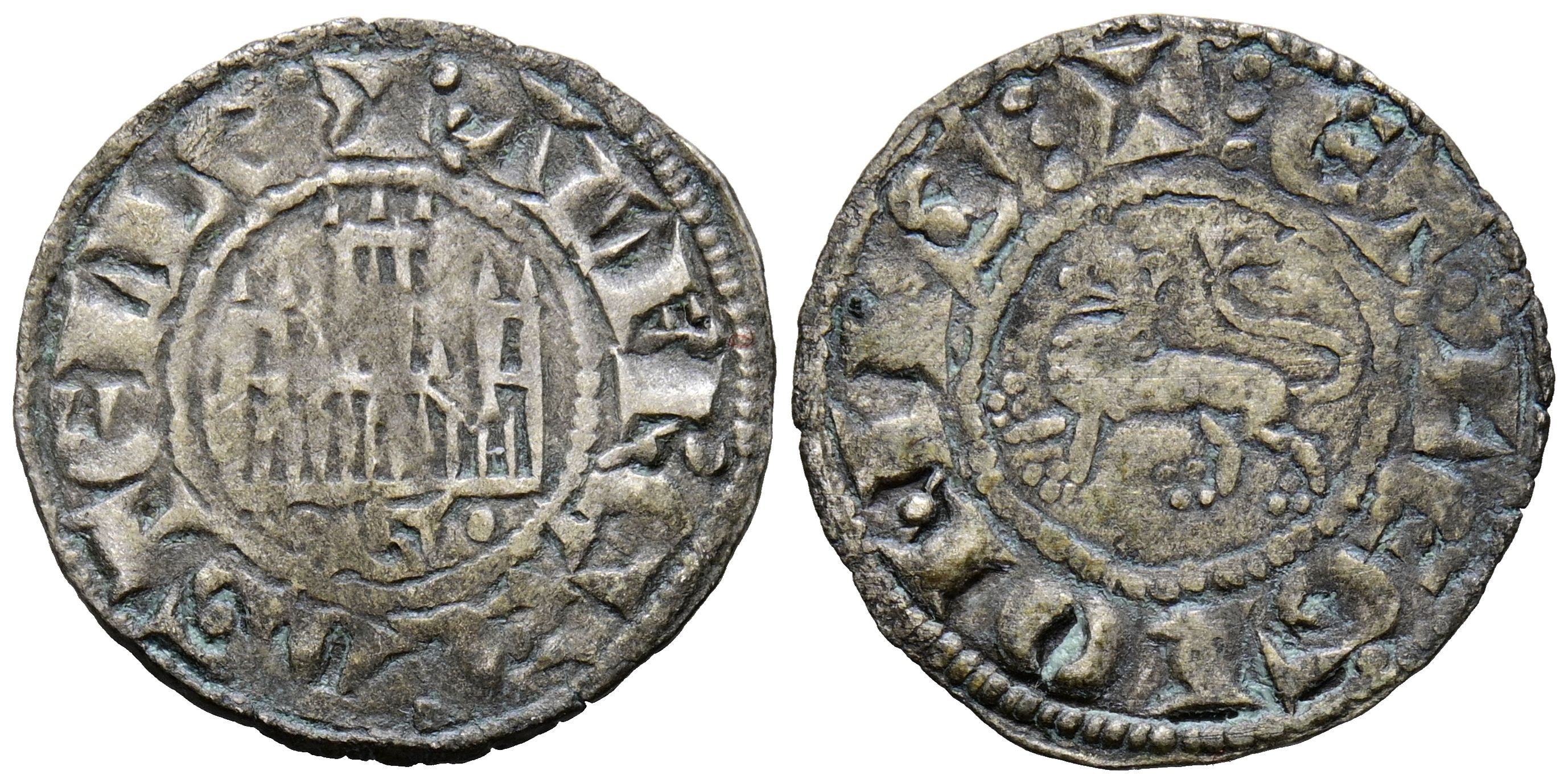 ALFONSO X (1252-1284). Dinero prieto. (Ve. 0,94g/19mm). Sevilla. (Imperatrix A10:6.30; FAB-254.1, como pepión). Anv: Castillo, debajo S entre puntos, todo dentro de gráfila circular, alrededor leyenda: ALF REX CASTELLE. Rev: León a izquierda dentro de gráfila circular, alrededor leyenda: ET LEGIONIS. MBC+. Muy bonito ejemplar.
