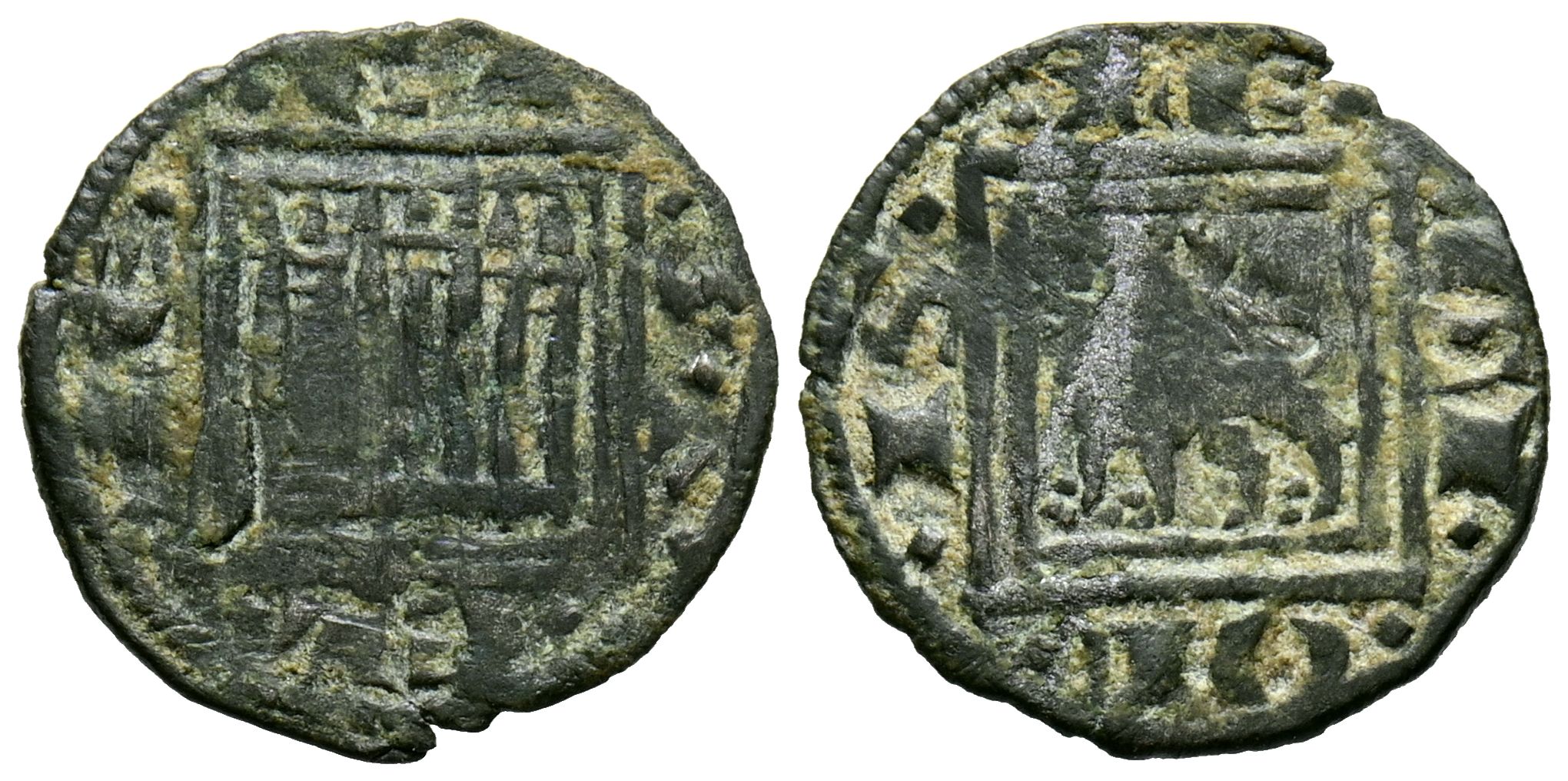 ALFONSO X (1252-1284). Obolo. (Ve. 0,51g/14mm). Santiago de Compostela o Coruña. (Imperatrix A10:14.32; FAB-280.1). Anv: Castillo dentro de gráfila cuadrada, alrededor leyenda: CASTELLE. Rev: León estante a izquierda dentro de gráfila cuadrada, alrededor leyenda: LEGIONIS. MBC.