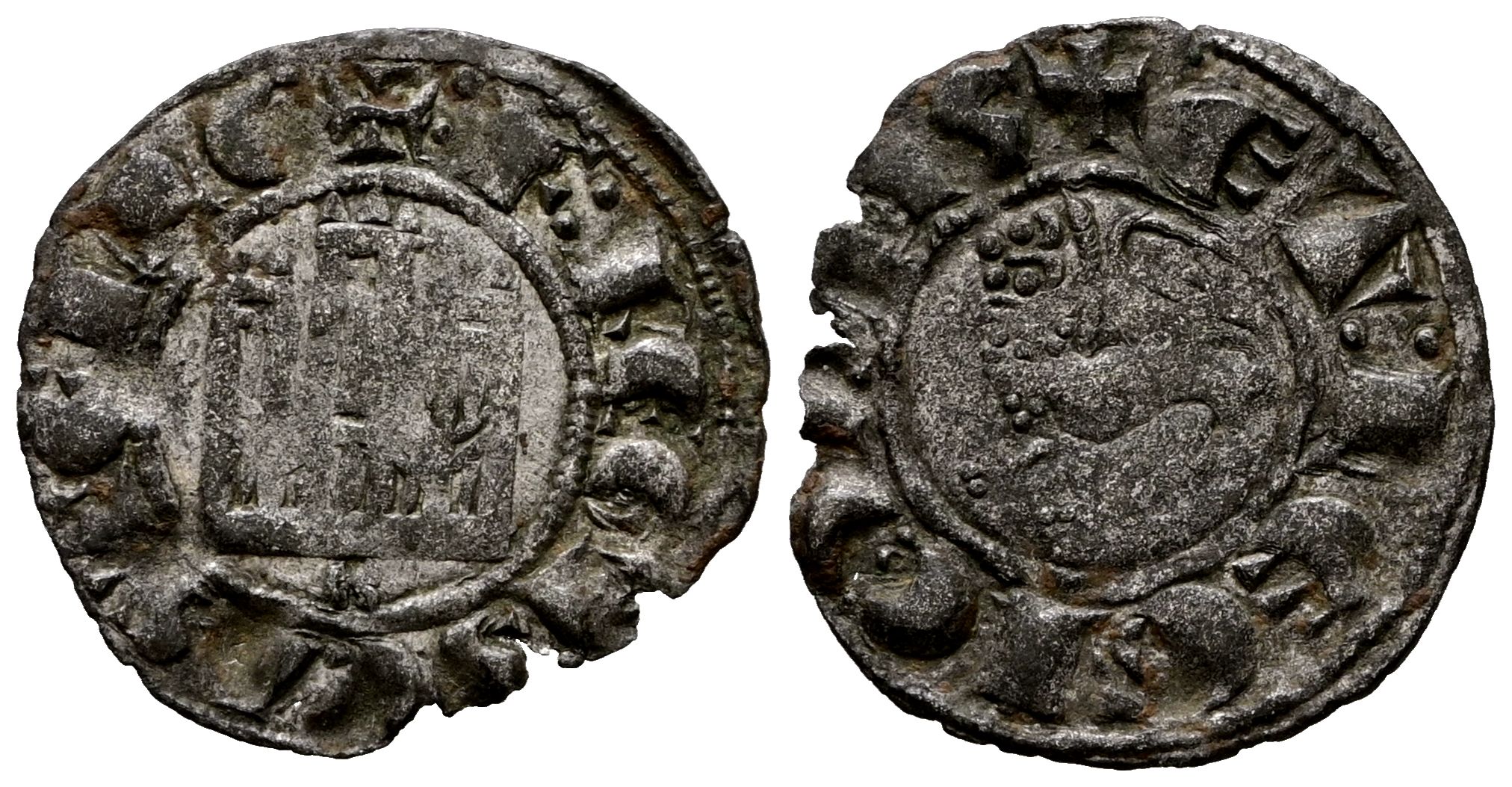 FERNANDO IV (1295-1312). Dinero. (Ve. 0,67g/19mm). Burgos. (Imperatrix F4:1.2; FAB-319.1, como pepión). Anv: Castillo, debajo B, todo dentro de gráfila circular, alrededor leyenda: F REGIS CASTELLE. Rev: León rampante a izquierda dentro de gráfila circular, alrededor leyenda: ET LEGIONIS. MBC. Leve falta en cospel.