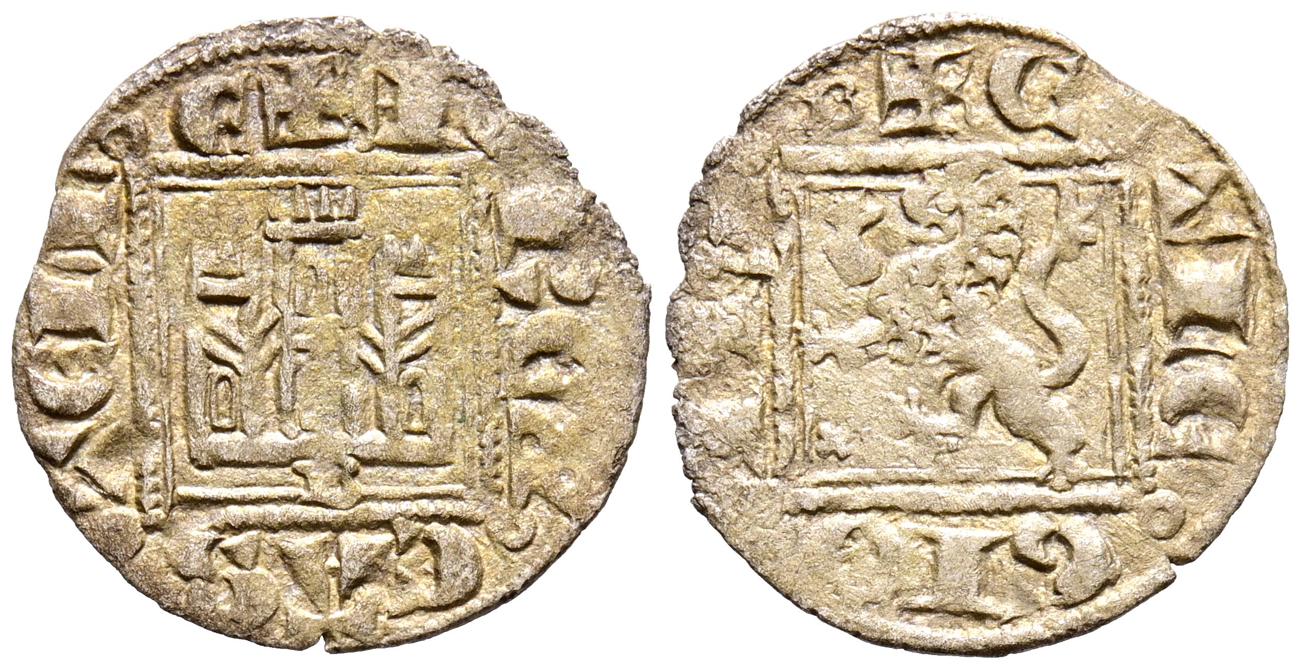 ALFONSO XI (1312-1350). Dinero Novén. (Ve. 0,63g/18mm). Burgos. (Imperatrix A11:1.6; FAB-355.2). Anv: Castillo, debajo B, todo dentro de gráfila cuadrada, alrededor leyenda: A REX CAS TELL E. Rev: León rampante a izquierda con marca de aspa delante, todo dentro de gráfila cuadrada, alrededor leyenda: E TLE GIO NIS B. MBC+. Ligero tono dorado. Muy atractivo ejemplar.