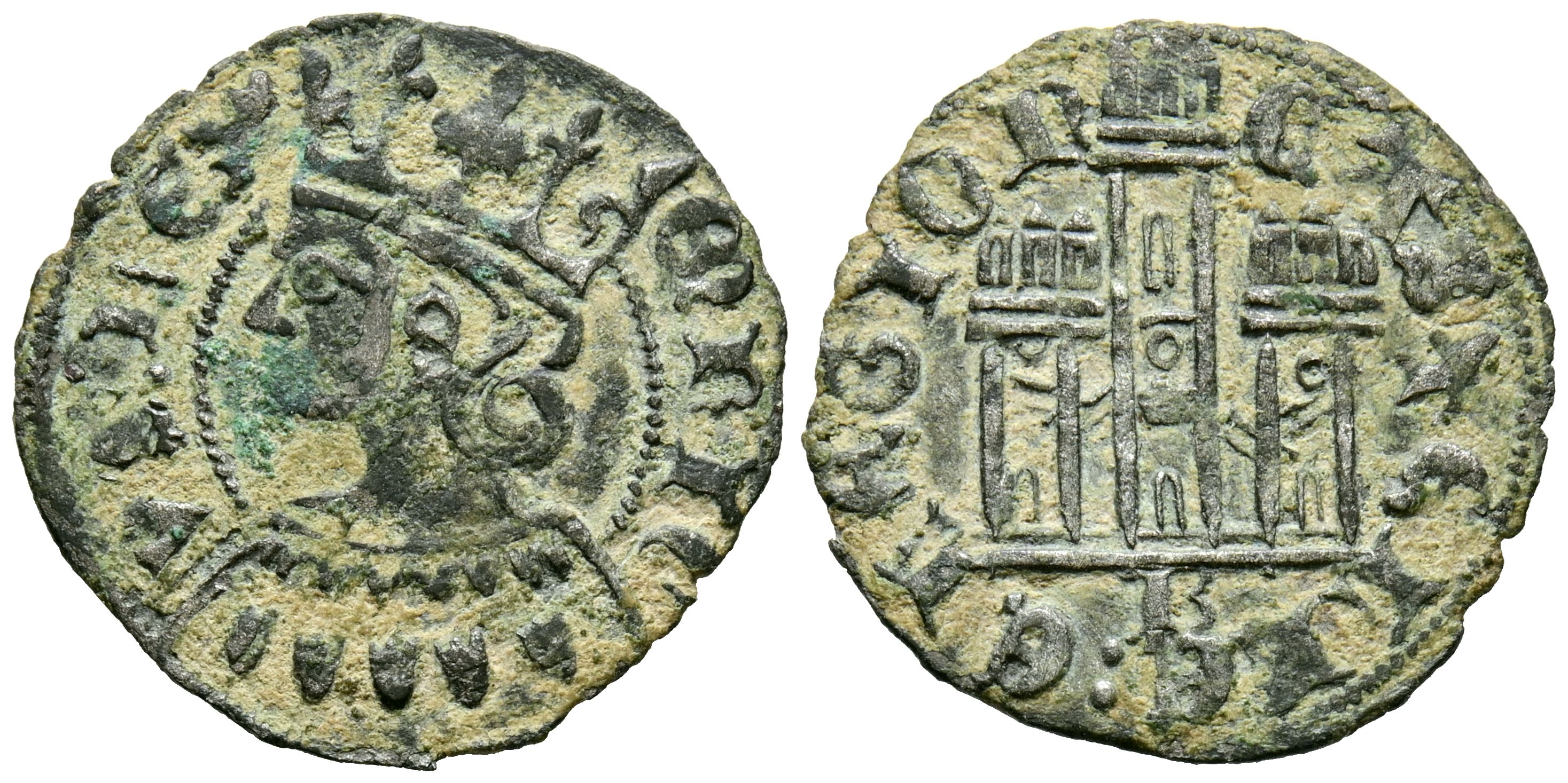 ENRIQUE II (1368-1379). Cornado. (Ve. 1,16g/20mm). Burgos. (Imperatrix E2:20.6; FAB-486). Anv: Busto coronado de Enrique II a izquierda dentro de semigráfila, a los lados leyenda: ENRICV S REX. Rev: Castillo, debajo B, alrededor leyenda: CASTELE E LEGION. MBC+. Interesente ejemplar.
