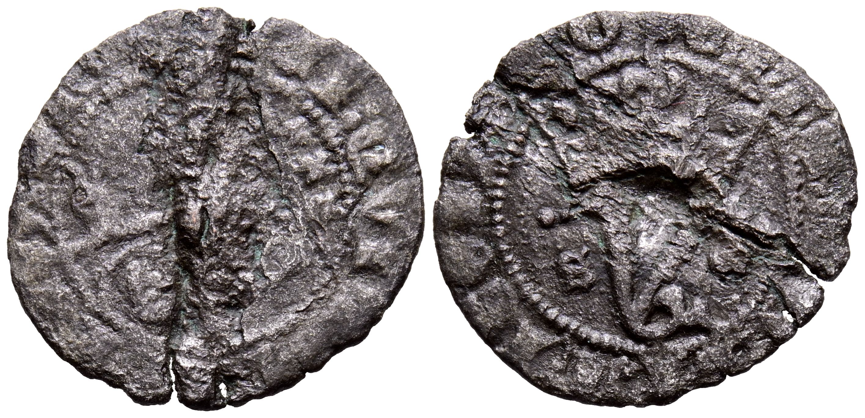 JUAN I (1379-1390). Blanca del Agnus Dei. (Ve. 1,57g/20mm). Segovia. (FAB-554.2). Anv: Agnus Dei a izquierda con estandarte, delante roel y en exergo: XXX, todo en gráfila circular, alrededor leyenda: AGNVS DEI QVI TOLIS PE. Rev: Y coronada, flanqueada por S y G retrógradas, dentro de gráfila circular, alrededor leyenda: PECATA MVNDI MISERE N. BC-. Rara.