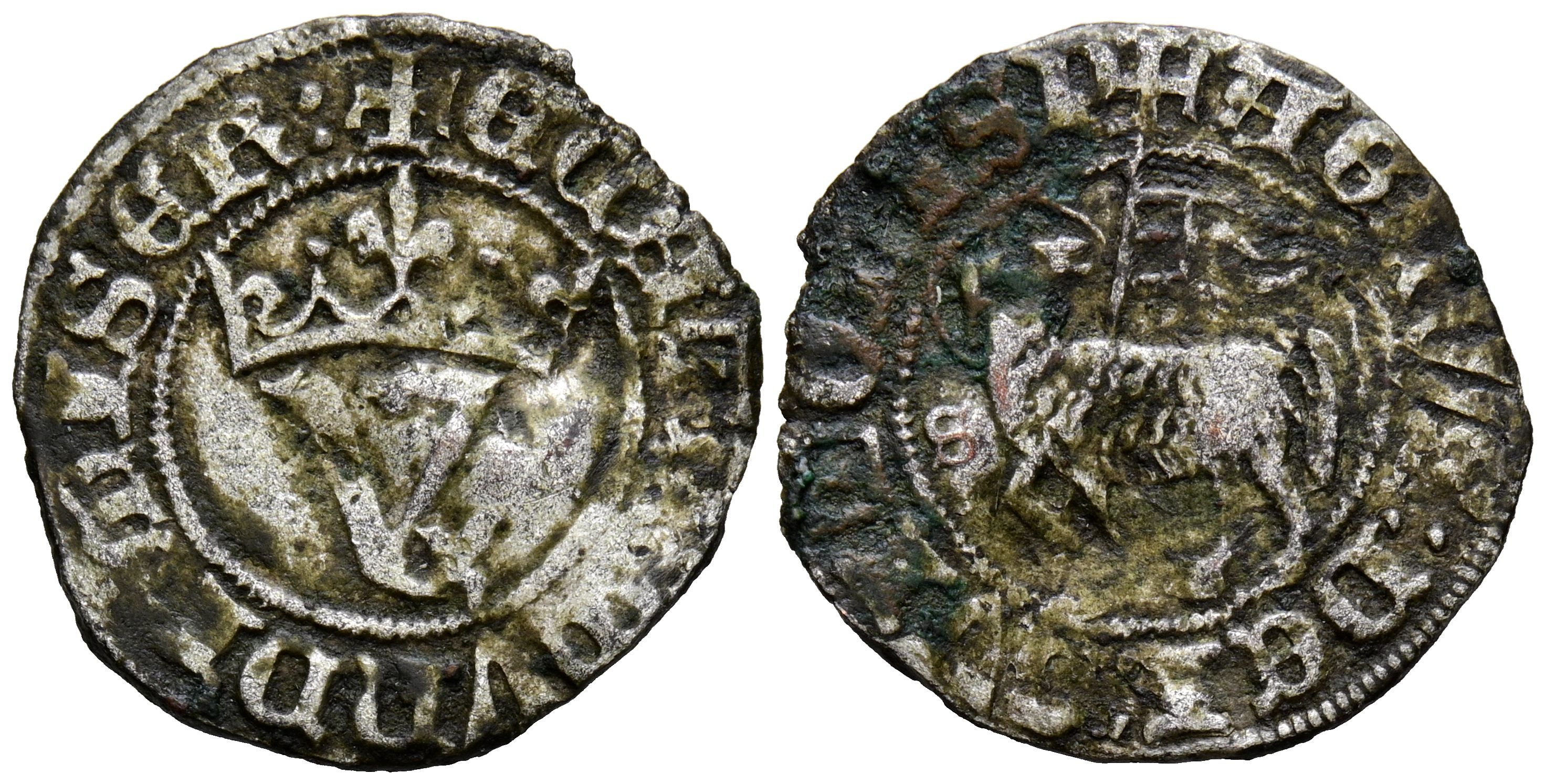 JUAN I (1379-1390). Blanca del Agnus Dei. (Ve. 1,57g/21mm). Sevilla. (Imperatrix J1:9.28; FAB-555.2). Anv: Cordero con estandarte a izquierda mirando a derecha, delante S, alrededor leyenda: AGNVS DEI QVI TOLIS PE. Rev: Y coronada en gráfila circular, alrededor leyenda: E CATA MVNDI MISERE N. MBC-. Verdín.