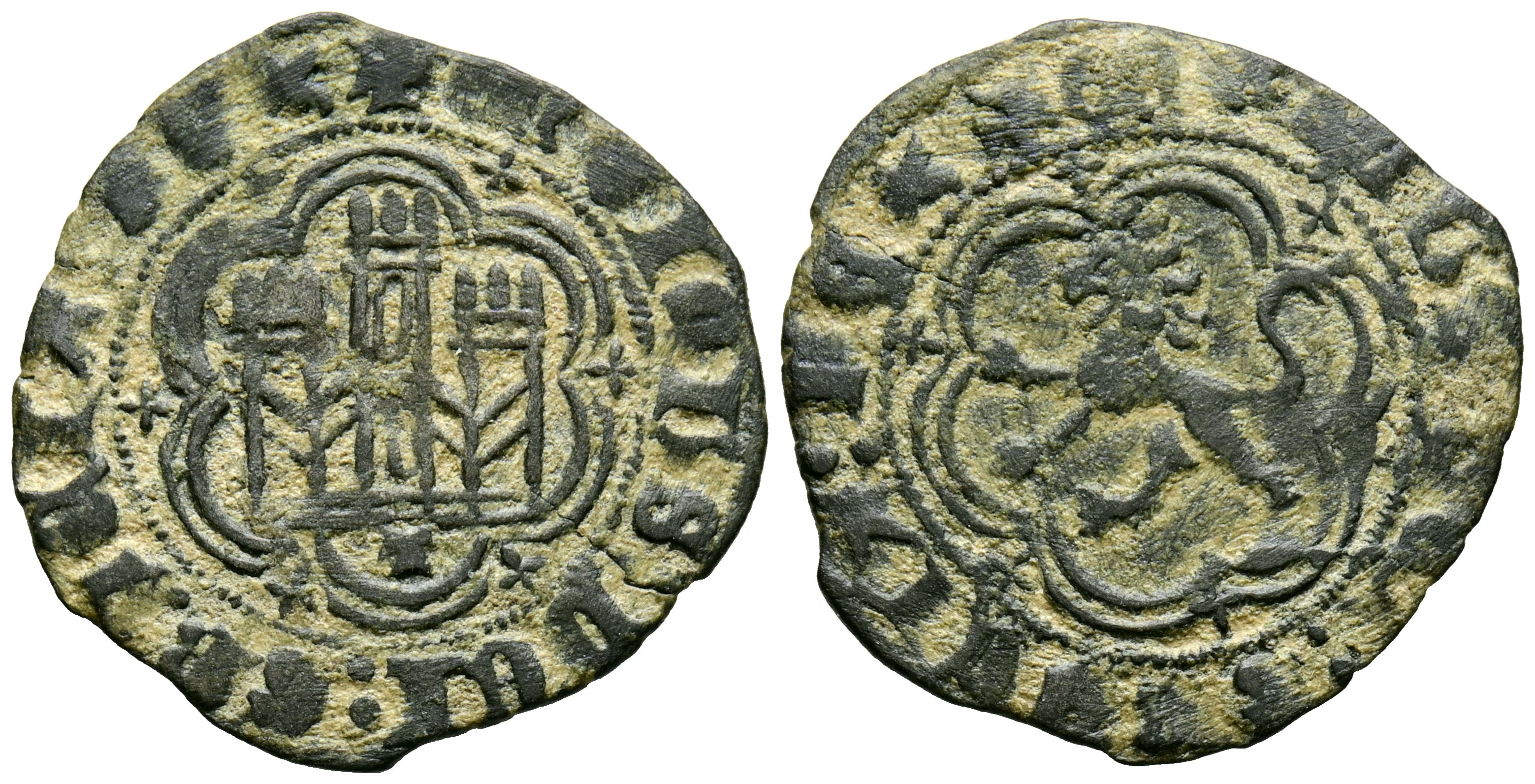 ENRIQUE III (1390-1406). Blanca. (Ae. 1,77g/22mm). Toledo. (Imperatrix E3:1,21; FAB-629). Anv: Castillo, debajo, dentro de gráfila lobular, alrededor leyenda: ENRICVS DEI GRACIA. Rev: León rampante a izquierda dentro de gráfila lobular, alrededor leyenda: ENRICVS DEI GRACIA. MBC.