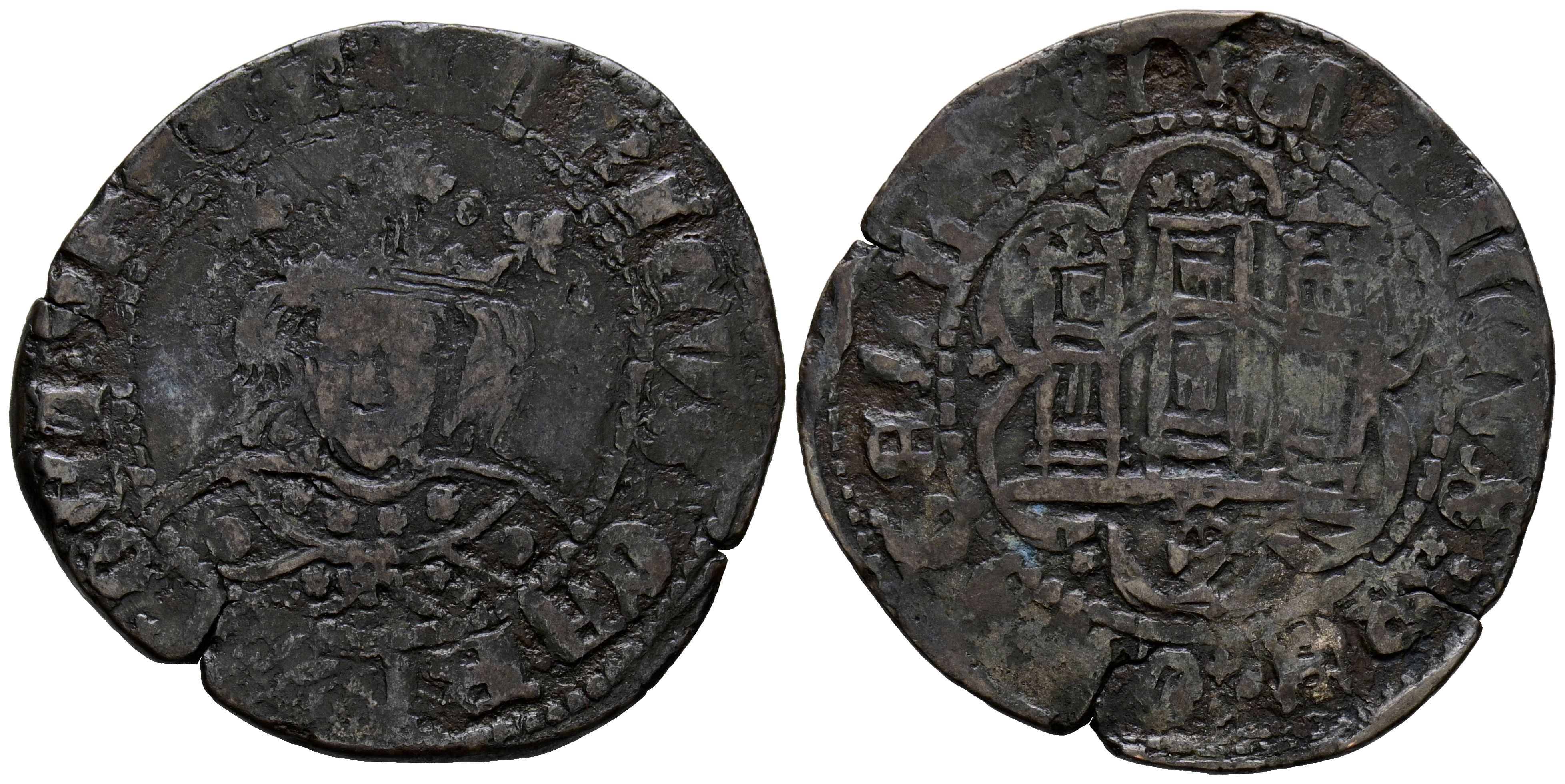 ENRIQUE IV (1454-1474). Cuartillo. (Ve. 3,59g/29mm). Cuenca. (Imperatrix E4:14.217, catalogado como R10; FAB-744 var). Anv: Busto de Enrique IV coronado y de frente dentro de una gráfilar circular, alrededor leyenda: ENRICVS QARTVS DEI GRACI. Rev: Castillo, debajo cuenco superado por estrella de seis puntas, todo dentro de una gráfila polilobular doble, alrededor leyenda: ENRICVS REX CASTELLE E L. MBC.