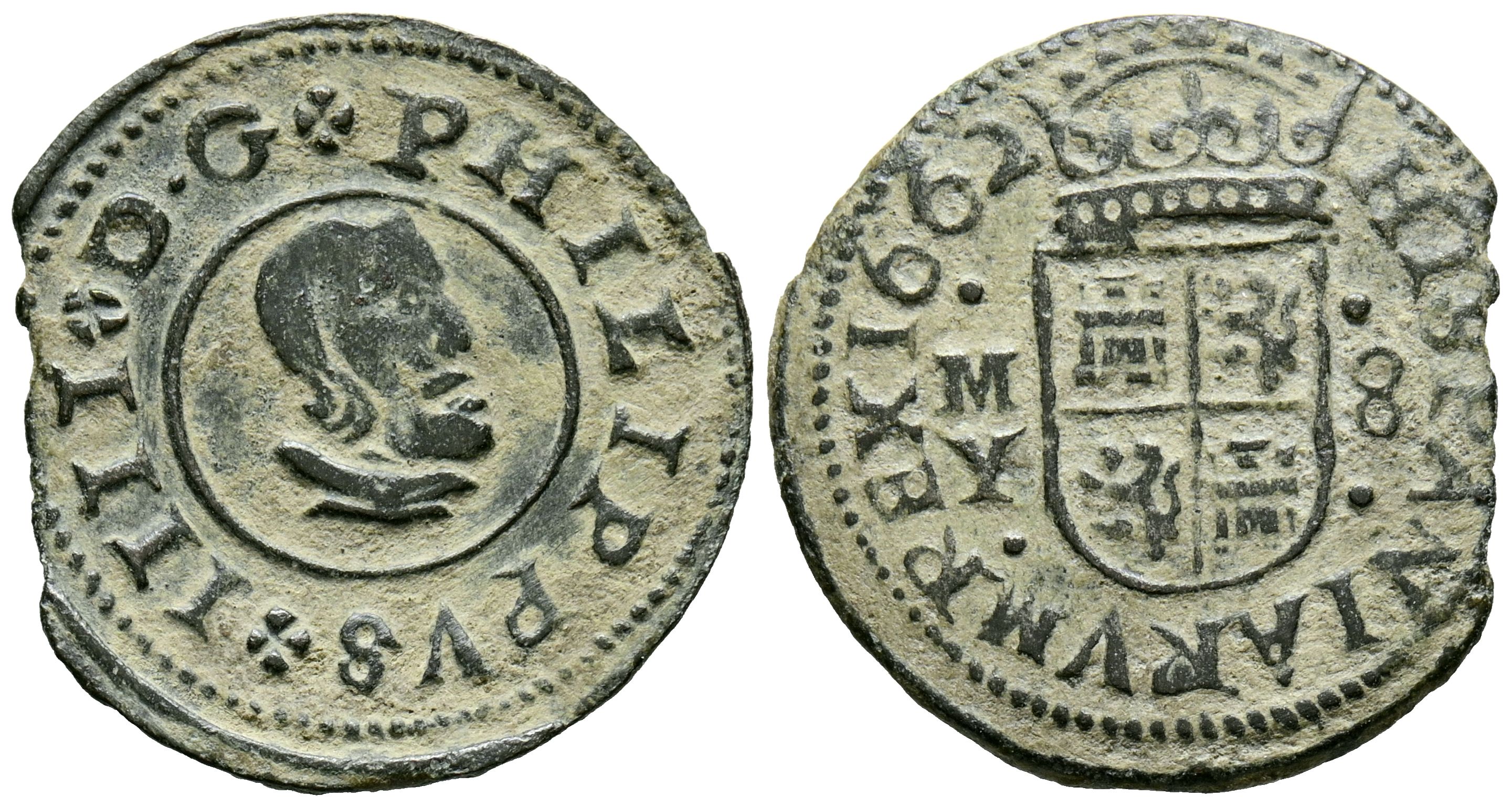 FELIPE IV (1621-1665). 8 Maravedís. (Ae. 1,57g/21mm). 1662. Madrid Y. (Cal-2019-363). MBC.