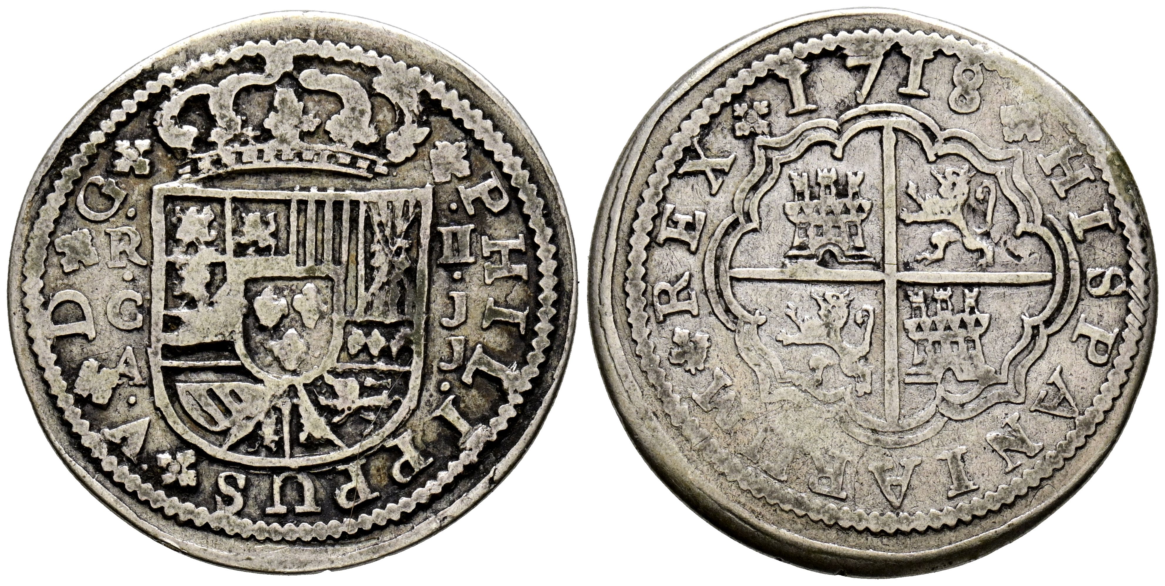 FELIPE V (1700-1746). 2 Reales. (Ar. 5,20g/28mm). 1718. Cuenca JJ. (Cal-2019-670). MBC-.