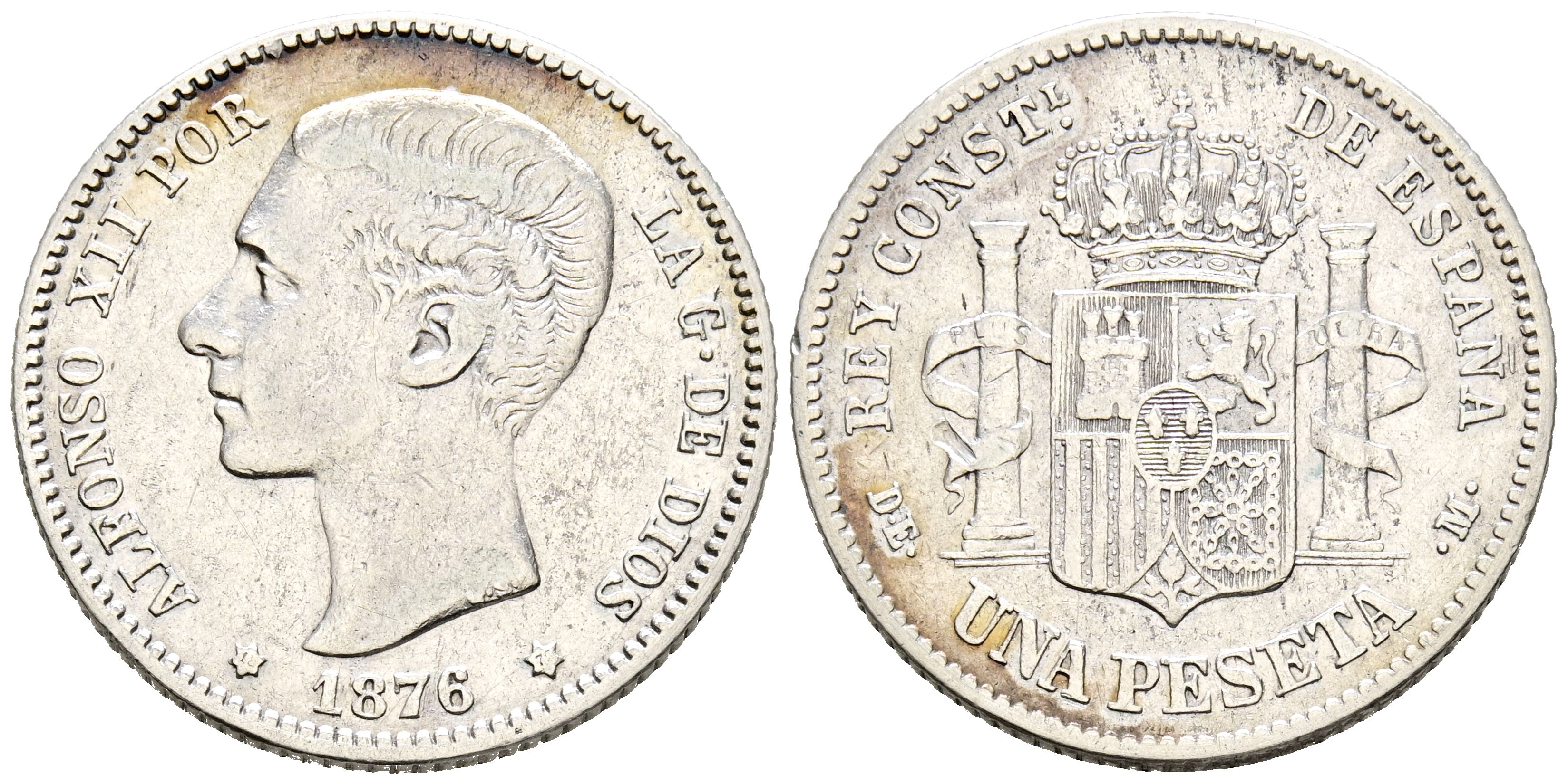 ALFONSO XII (1874-1885). 1 Peseta. (Ar. 4,95g/23mm). 1876 *18-76. Madrid DEM. (Cal-2019-15). MBC. Estrellas flojas pero visibles.