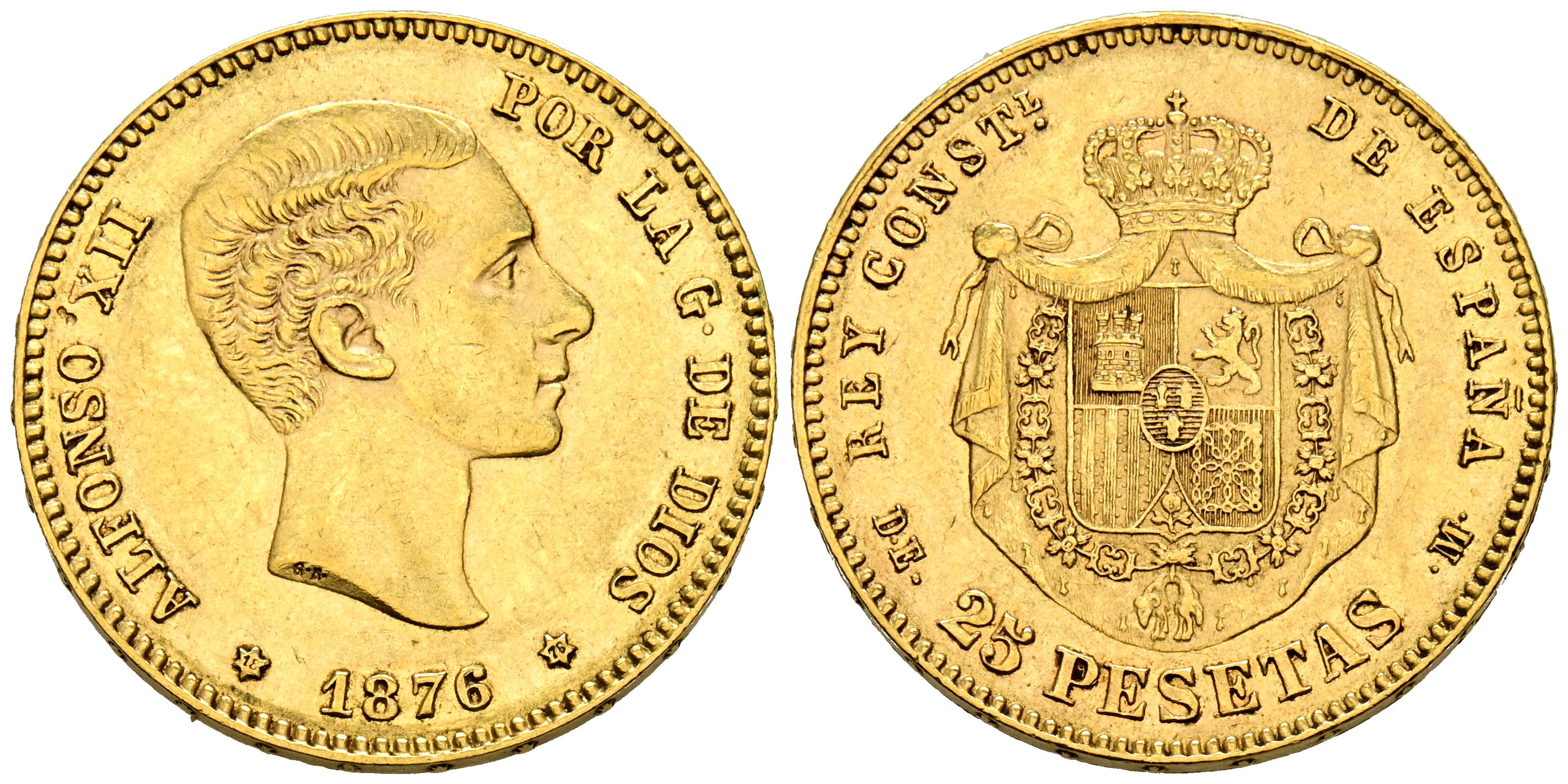 ALFONSO XII (1874-1885). 25 Pesetas. (Au. 8,04g/24mm). 1876 *18-76. Madrid DEM. (Cal-2019-67). MBC+.