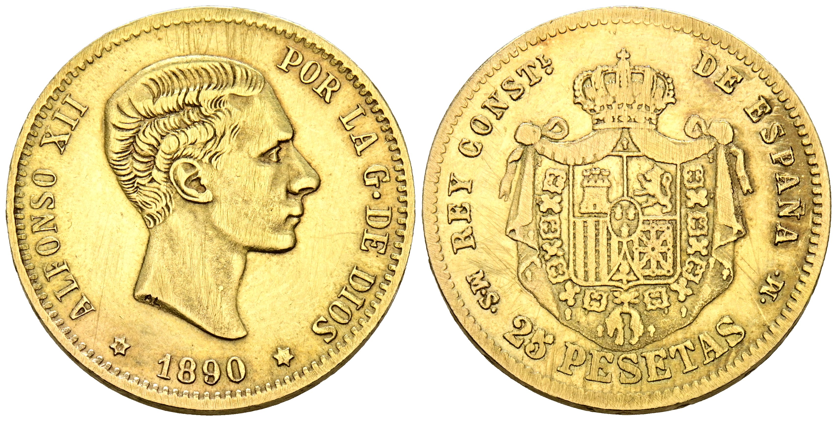 ALFONSO XII (1874-1885). 25 Pesetas. (Au. 7,83g/24mm). 1890. Moneda fantasía de joyería. Oro de 0,700 milésimas. MBC.