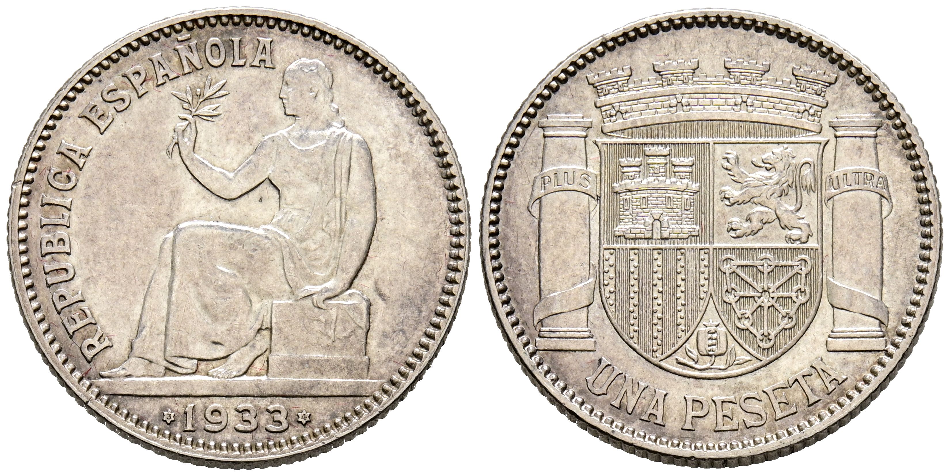 II REPÚBLICA (1931-1939). 1 Peseta. (Ar. 5,00g/23mm). 1933 *3-4. Madrid. (Cal-2019-34). EBC+.