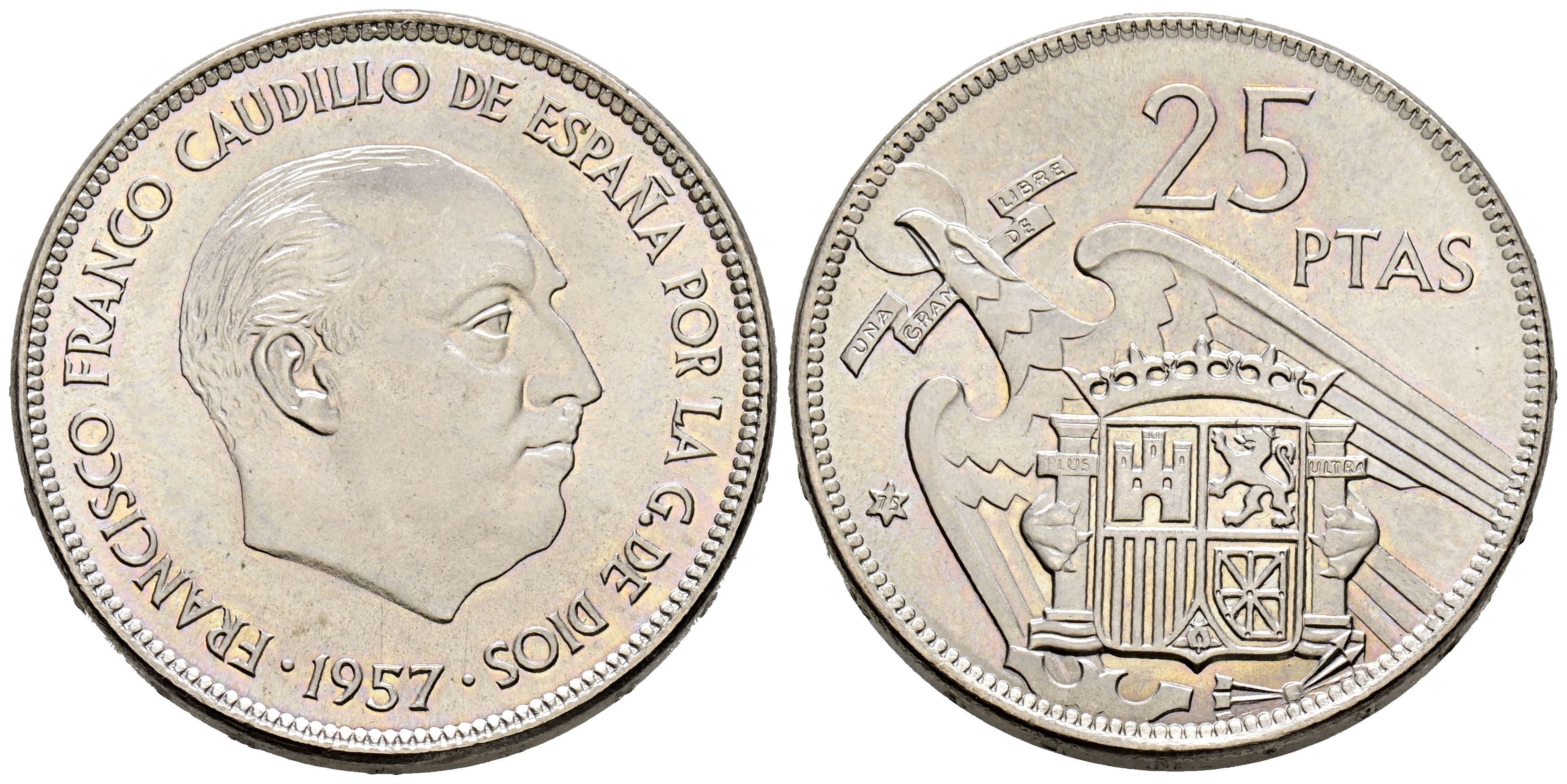 ESTADO ESPAÑOL (1936-1975). 25 Pesetas. (Ni. 8,39g/27mm). 1957 *75. Madrid. (Cal-2019-130). SC.