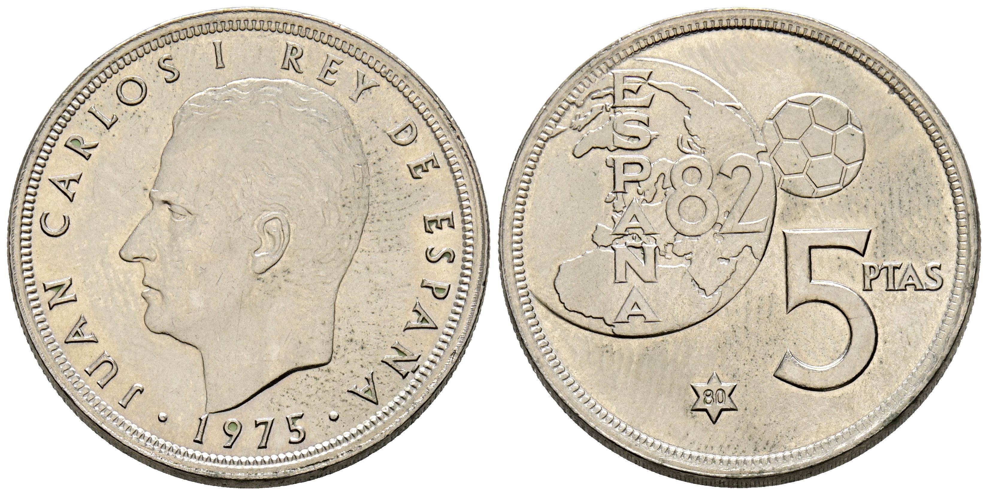 JUAN CARLOS I (1975-2014). 5 Pesetas. (CuNi. 5,68g/23mm). 1975 *80. (Cal-2019-40). Error del Mundial ´82. SC-.