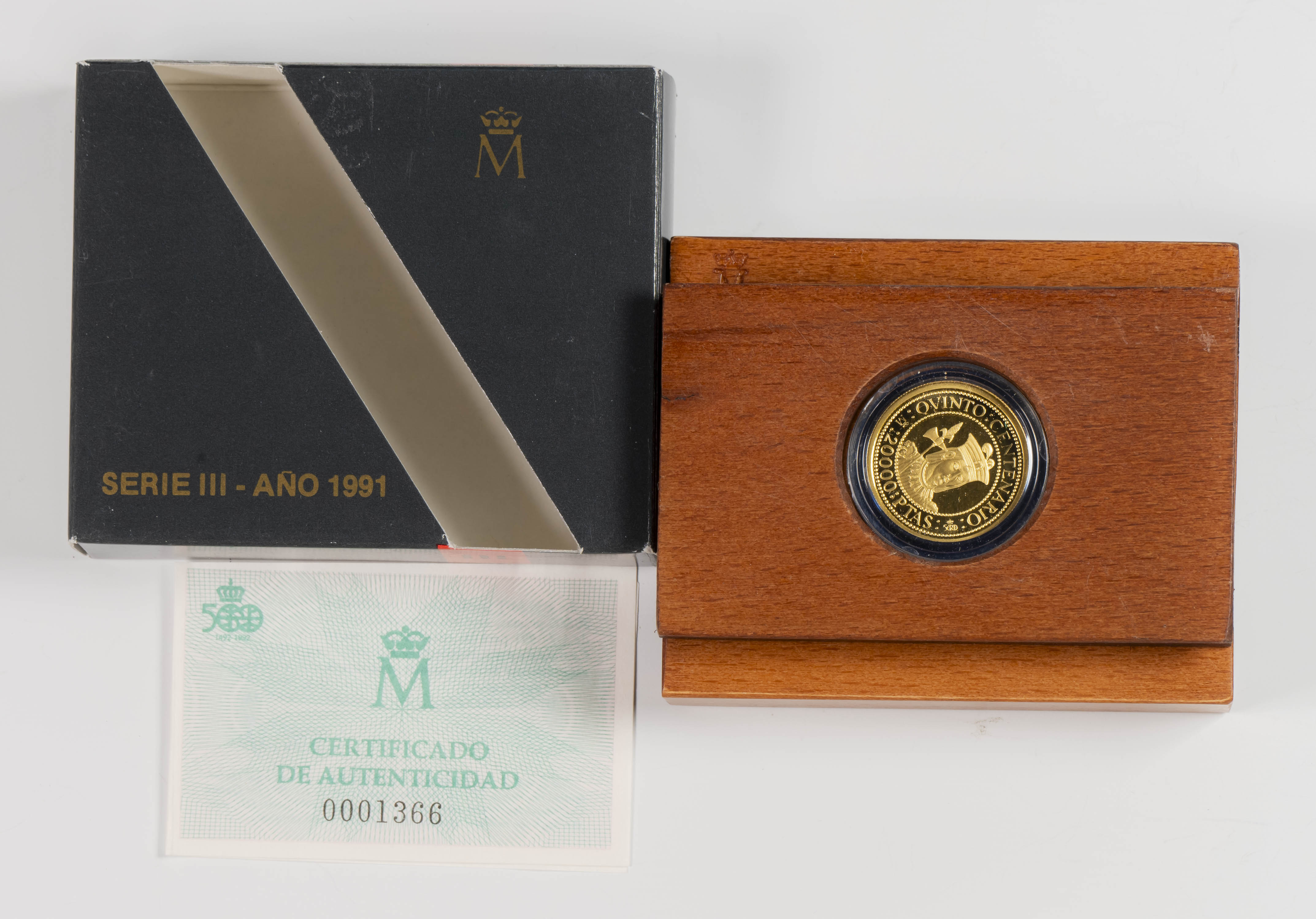JUAN CARLOS I (1975-2014). 20.000 Pesetas. (Au. 6,75g/23mm). Quinto Centenario. Serie III. 1991. FNMT. PROOF. Presentada en estuche oficial y con certificado de autenticidad.