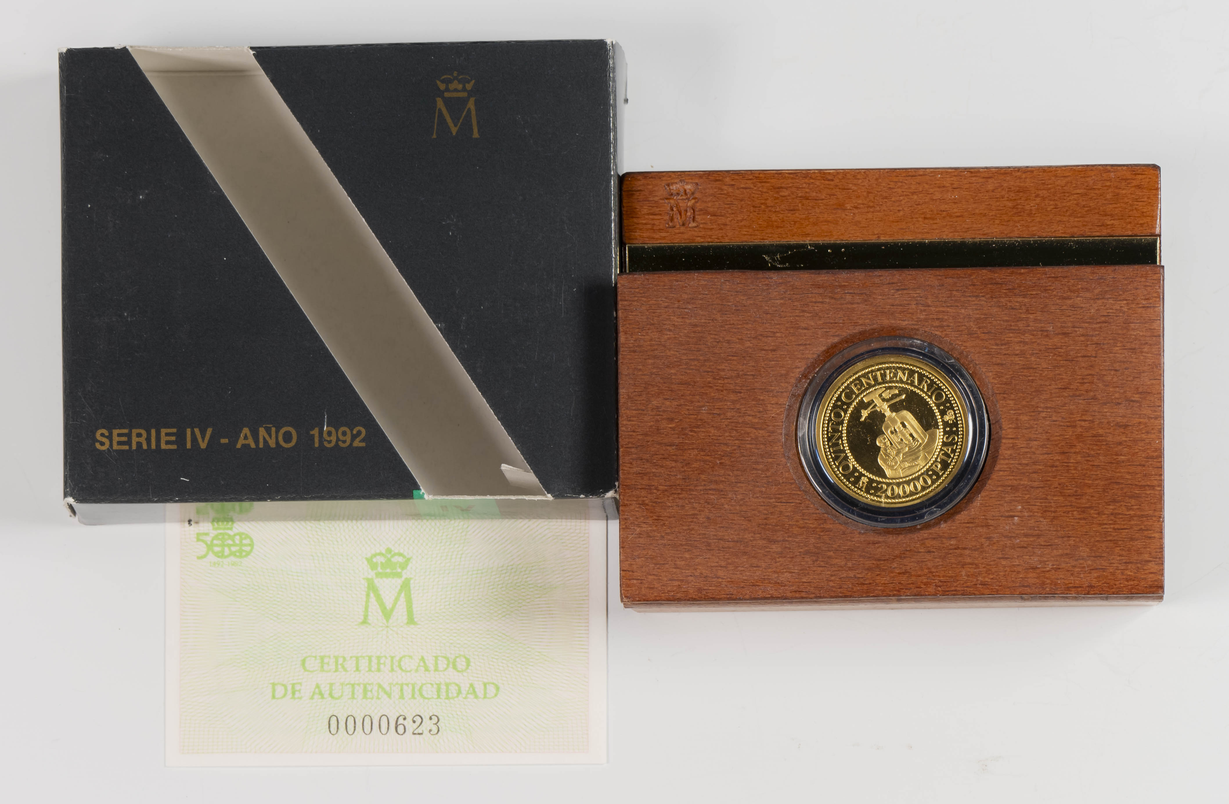 JUAN CARLOS I (1975-2014). 20.000 Pesetas. (Au. 6,75g/23mm). Quinto Centenario. Serie IV. 1992. FNMT. PROOF. Presentada en estuche oficial y con certificado de autenticidad.