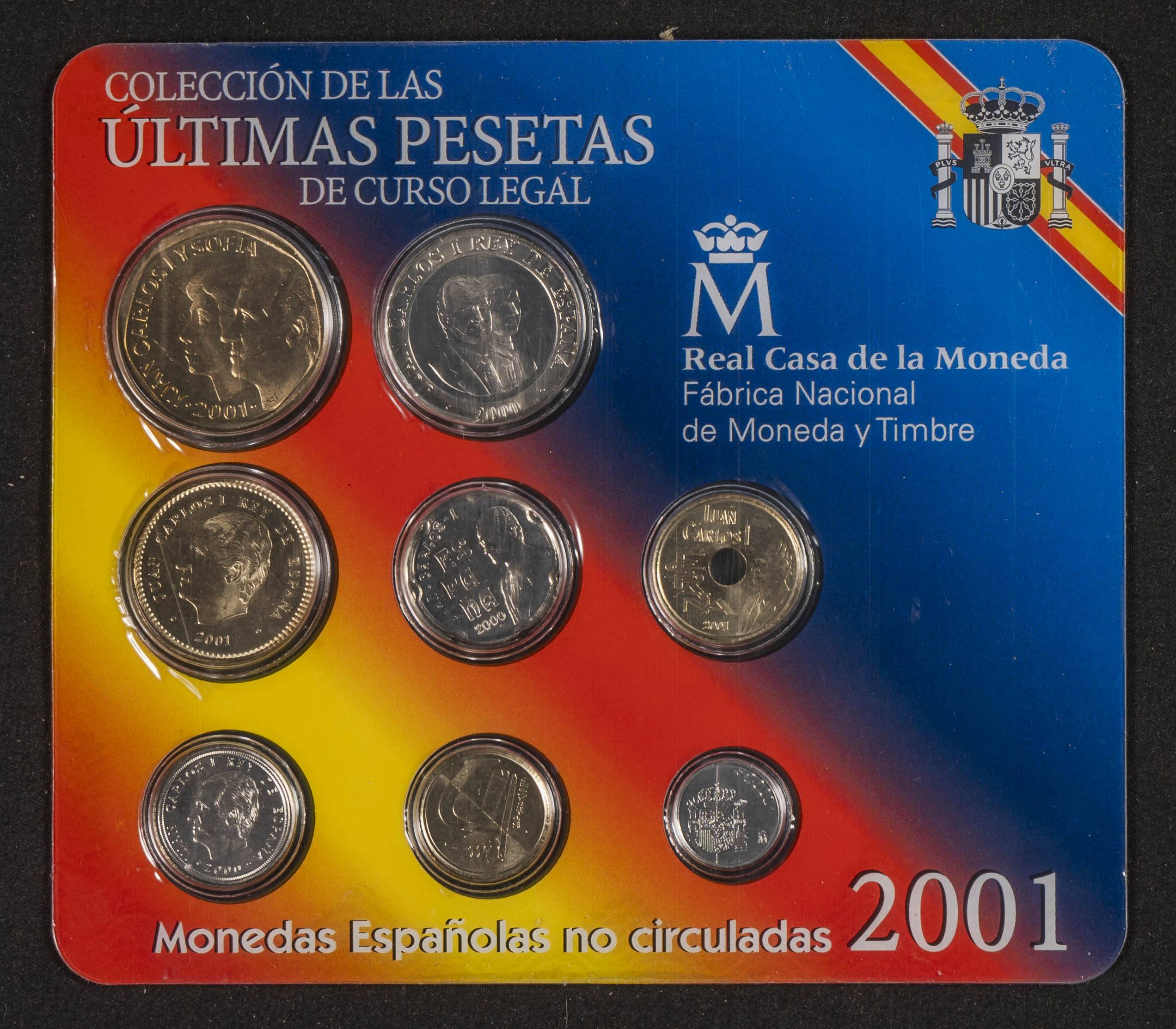 JUAN CARLOS I (1975-2014). Serie completa conmemorativa de Las Últimas Pesetas en Plata. Valores comprendidos entre 1 y 2000 Pesetas. 2000-2001. FNMT. PROOF. Presentadas en estuche oficial, incluyendo certificado y libro de Jose María Aledón: Historia de la Peseta".
