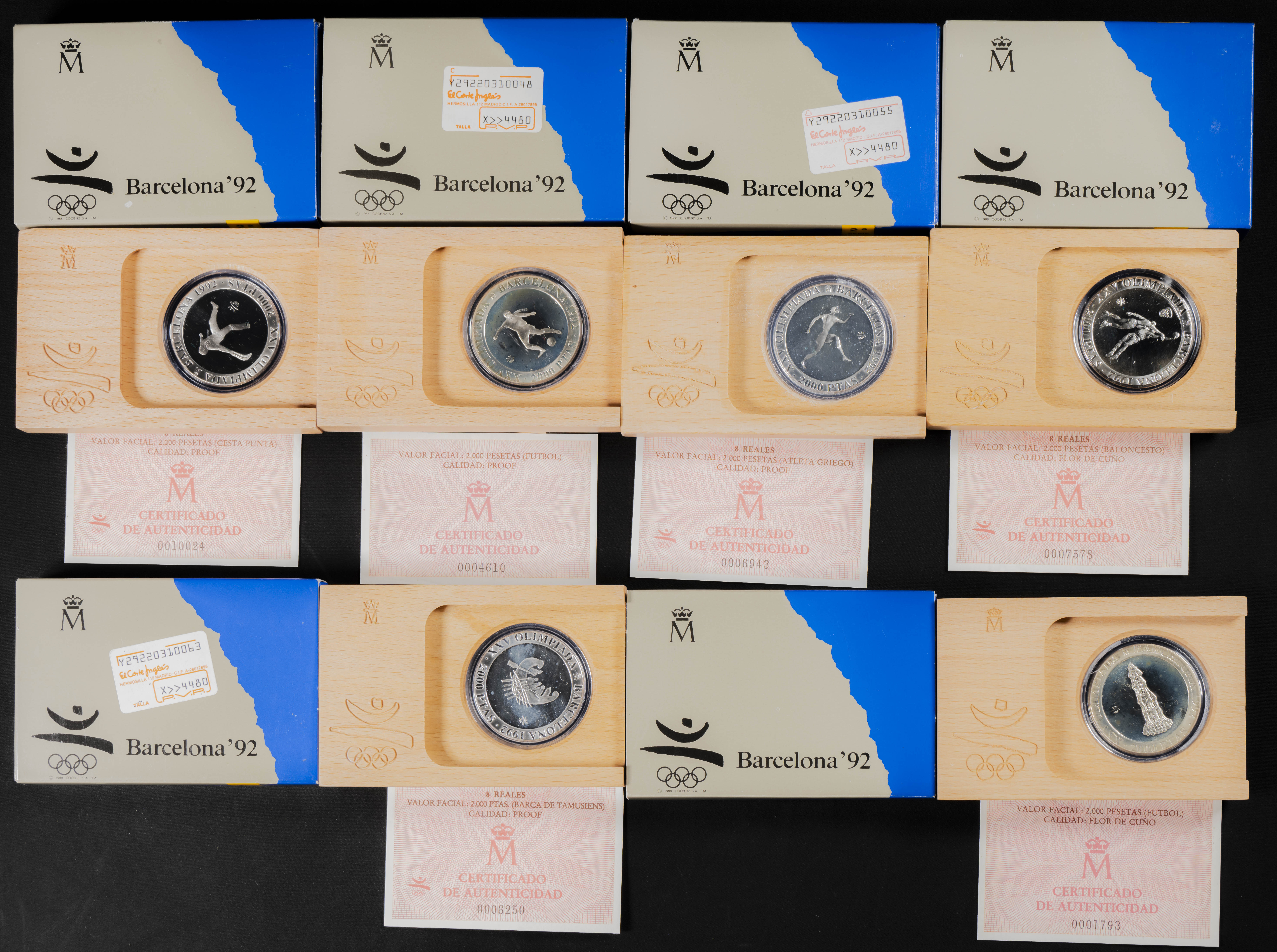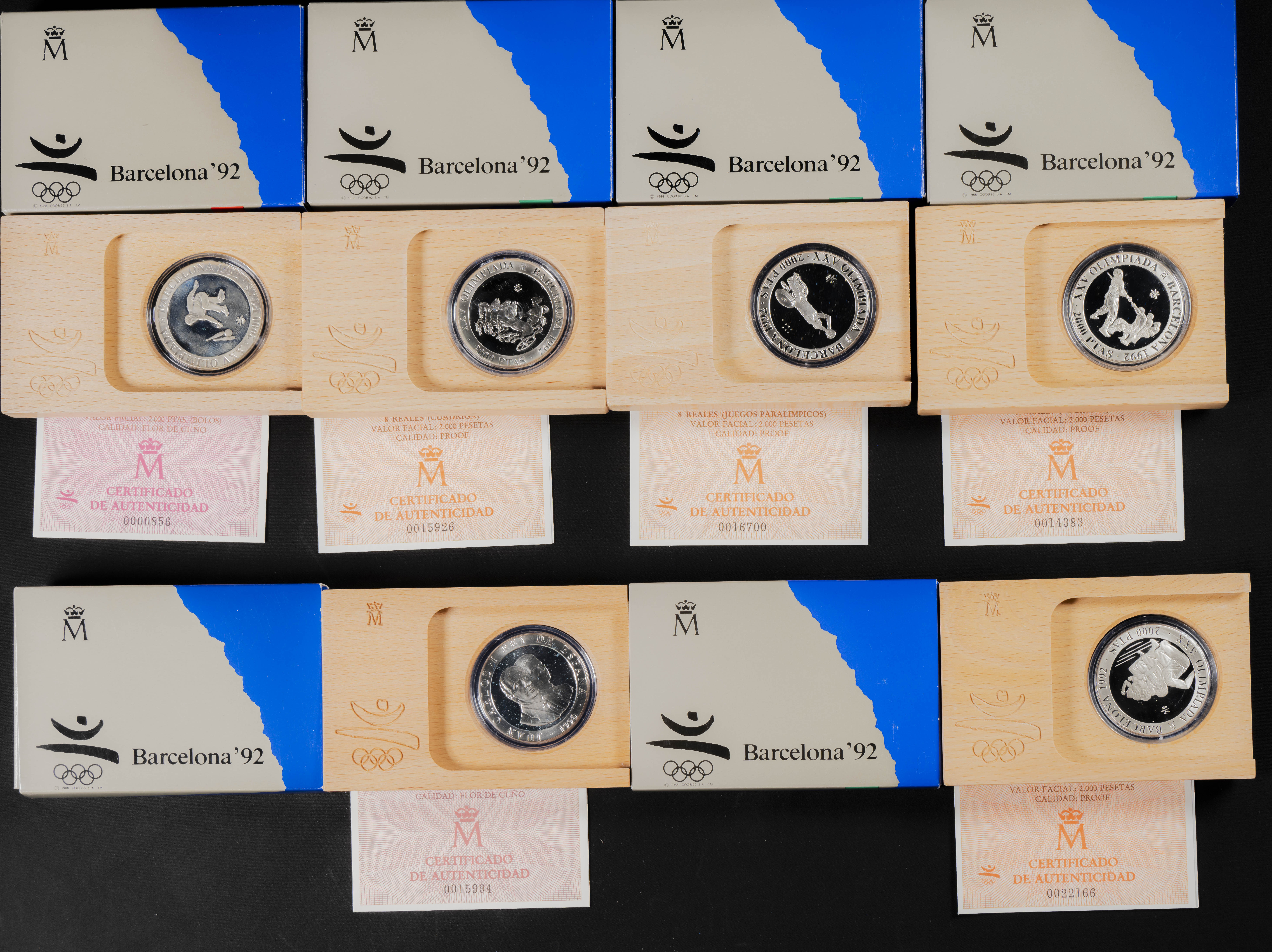 JUAN CARLOS I (1975-2014). Conjunto de 17 estuches de 2000 Pesetas en plata de la Serie Barcelona 92 (Series I, II, III y IV). 1990-1992. FNMT. Ningún estuche repetido. FDC y PROOF. Presentados en estuches oficiales y con certificados de autenticidad.