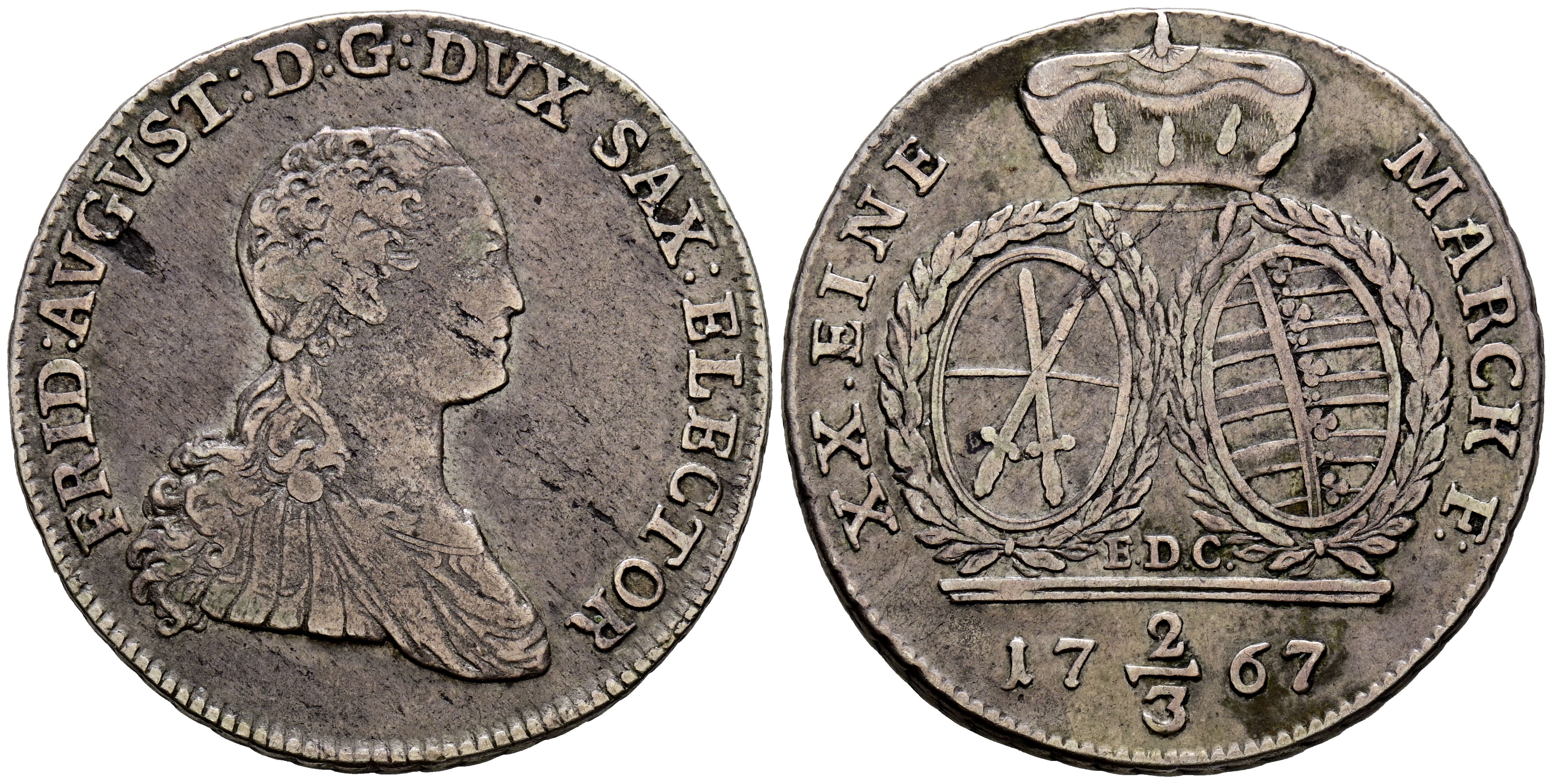 ALEMANIA, Friedrich August III. 2/3 de Thaler (Ar. 13,74g/33mm). 1767. Dresden (Electorado de Sajonia). (Km#981). MBC-/MBC.