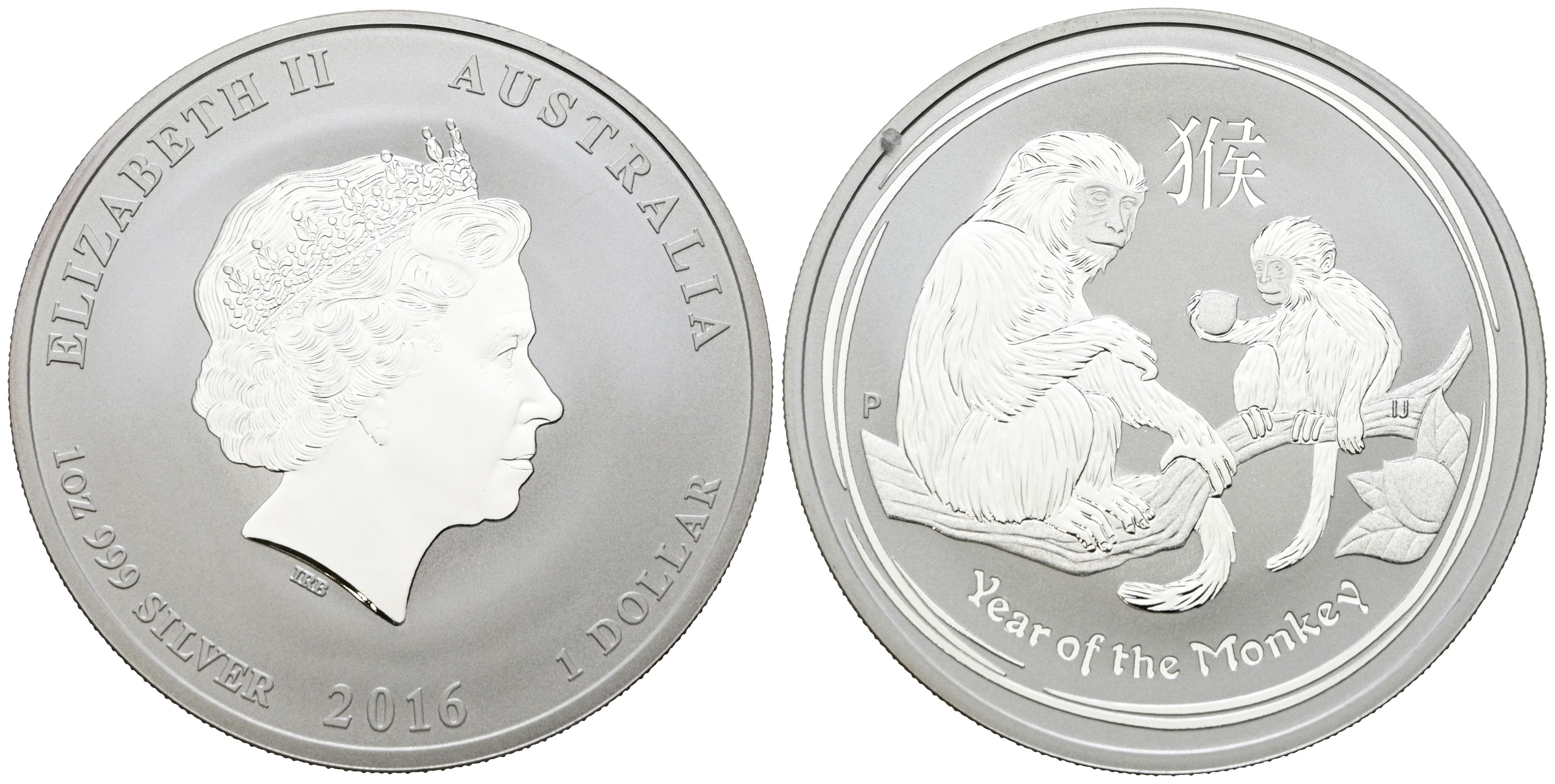 AUSTRALIA. 1 Dollar. (Ar. 31,30g/40mm). 2016. Perth. Año del Mono. SC. Incluye cápsula.