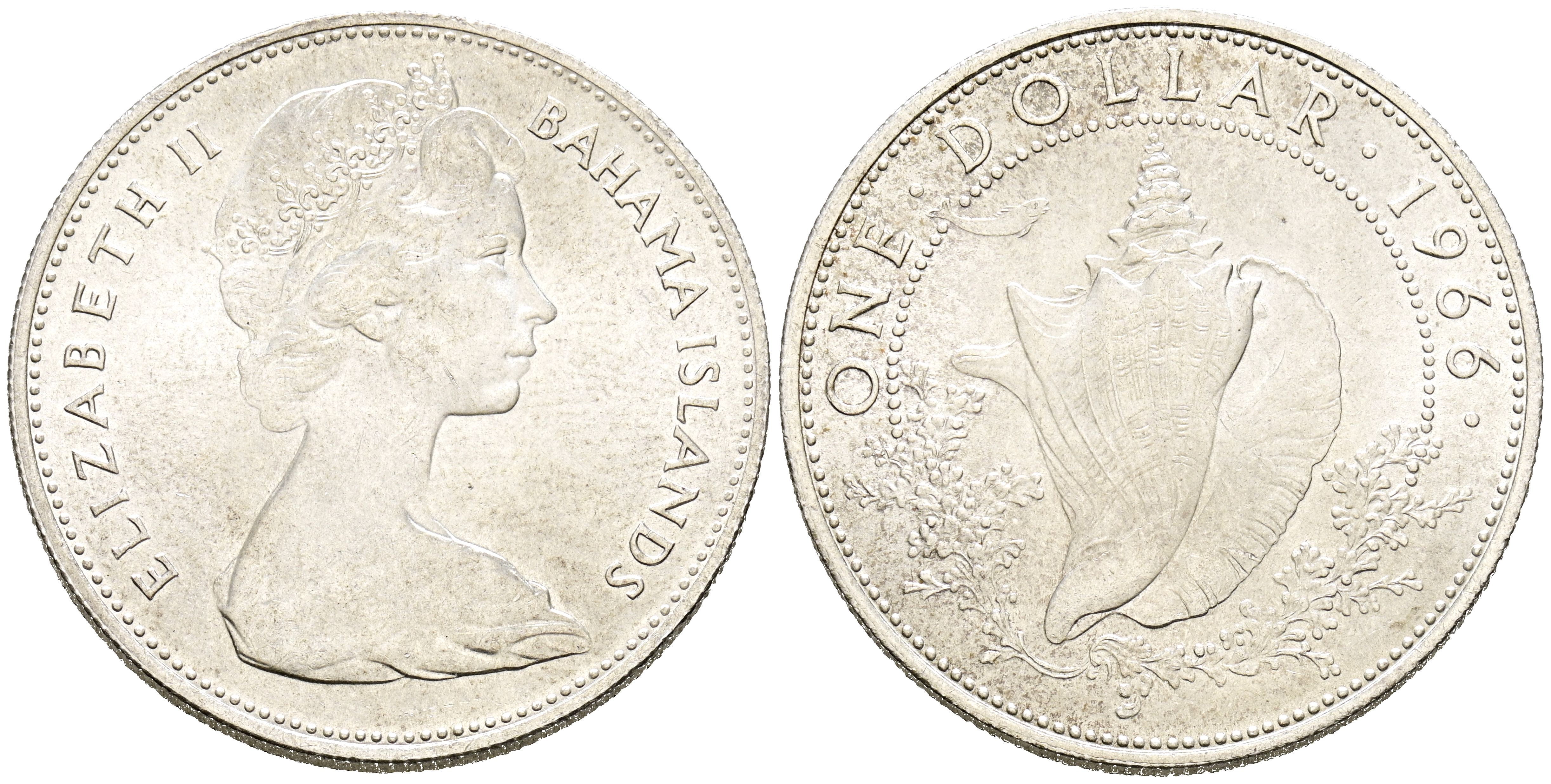 BAHAMAS. 1 Dollar. (Ar. 18,16g/34mm). 1966. Isabel II. (Km#8). EBC+. Rayitas.