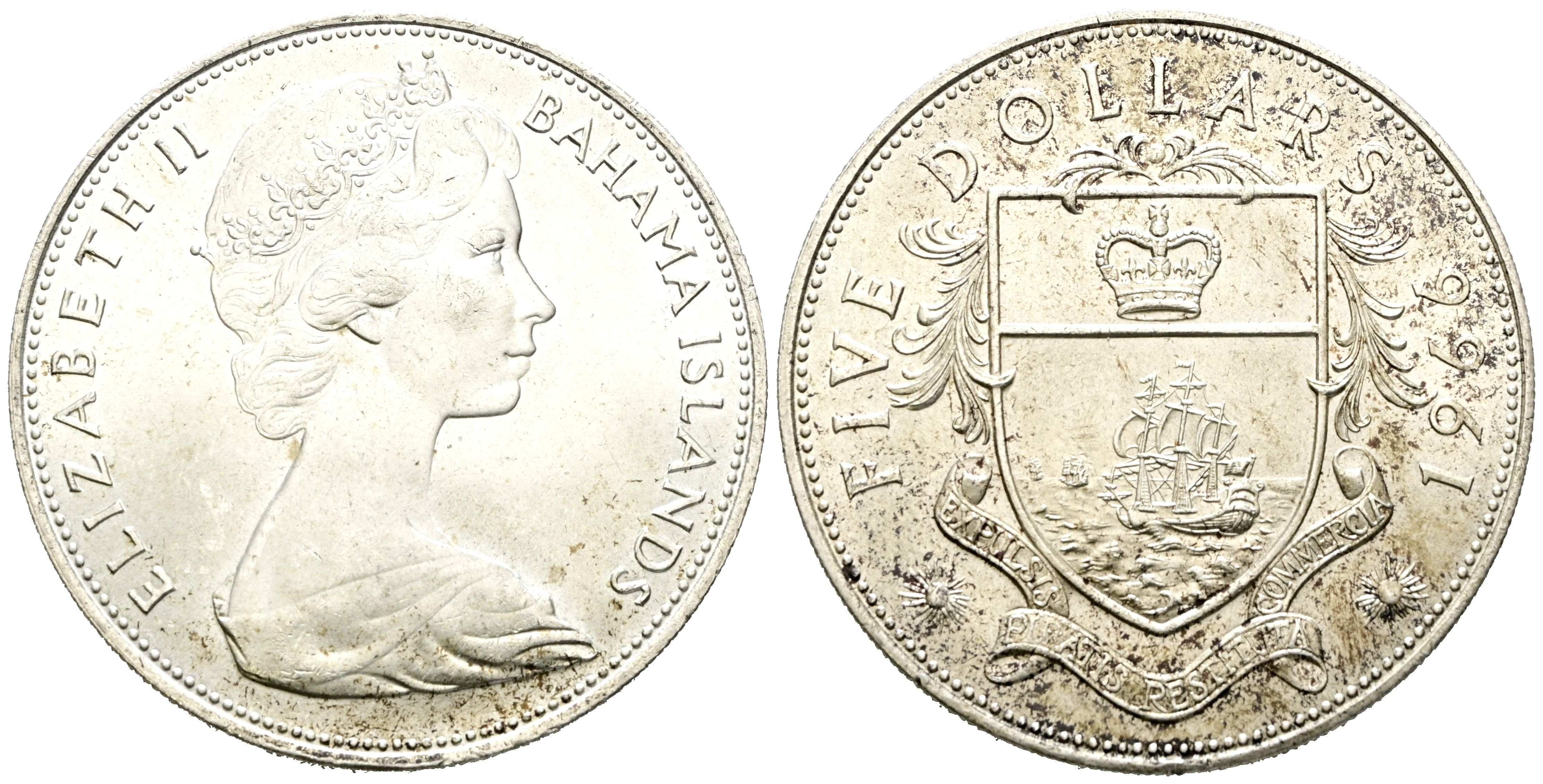 BAHAMAS, Isabel II. 5 Dollars. (Ar. 42,14g/45mm). 1973. (Km#33). SC-.