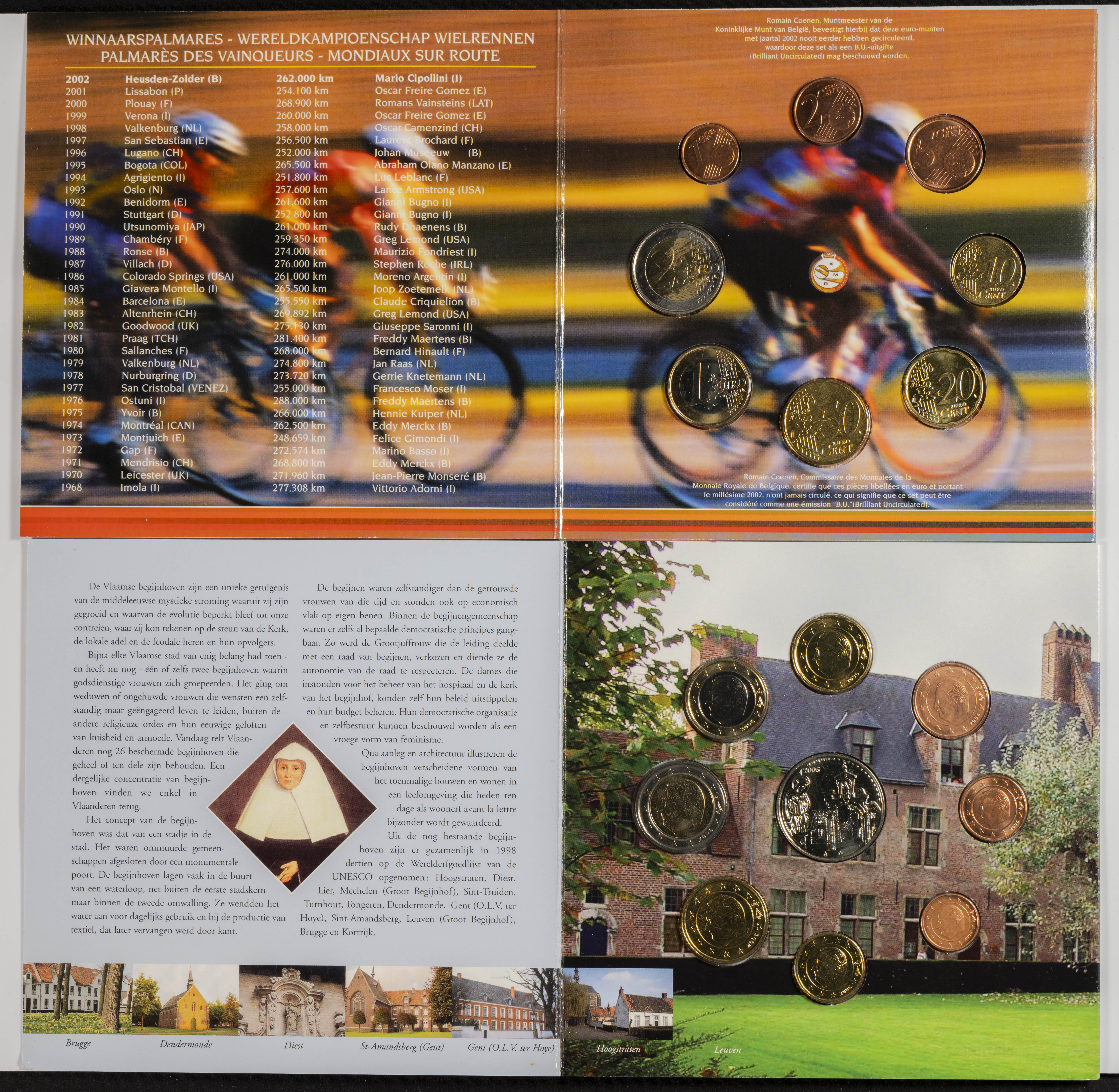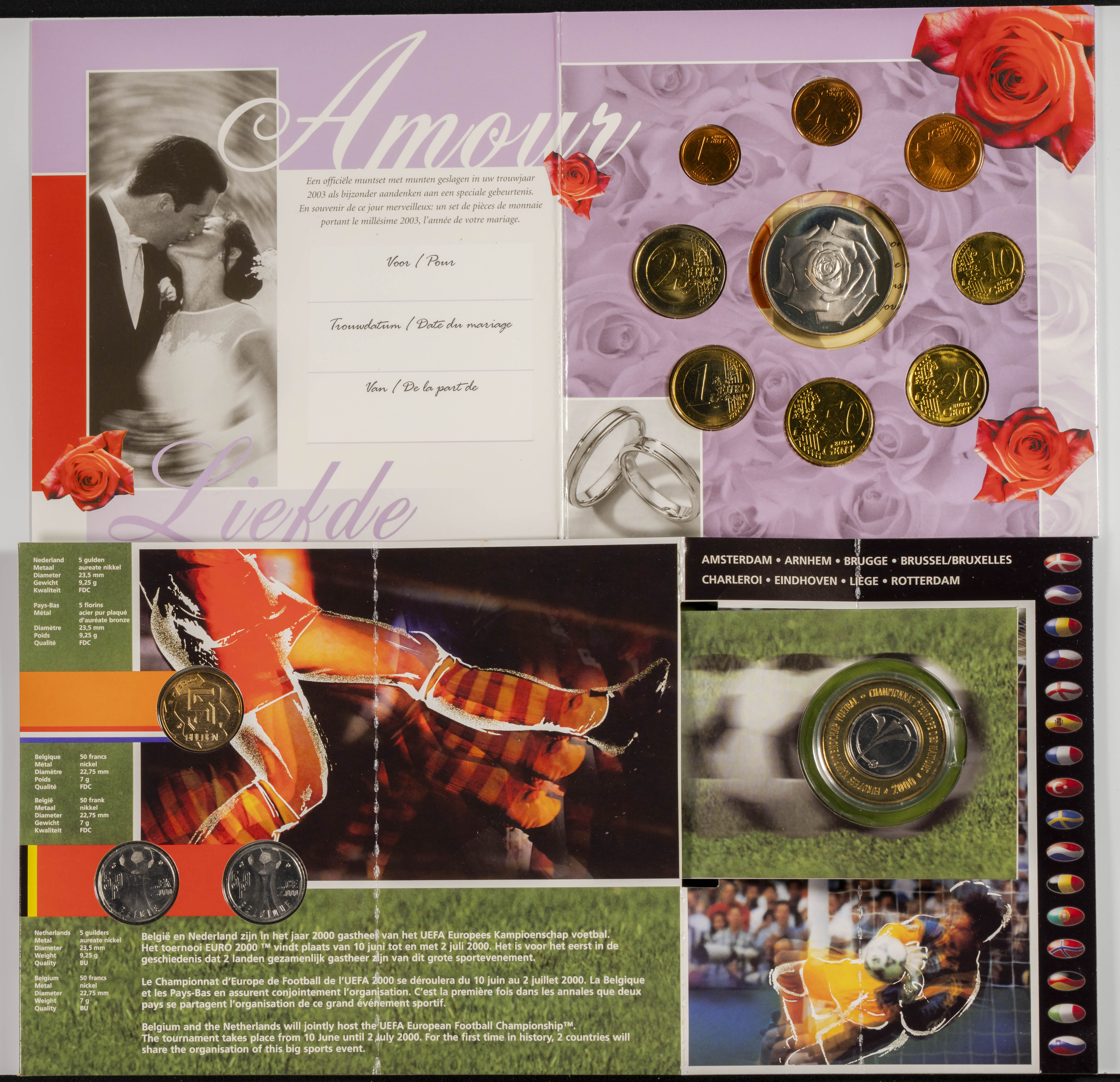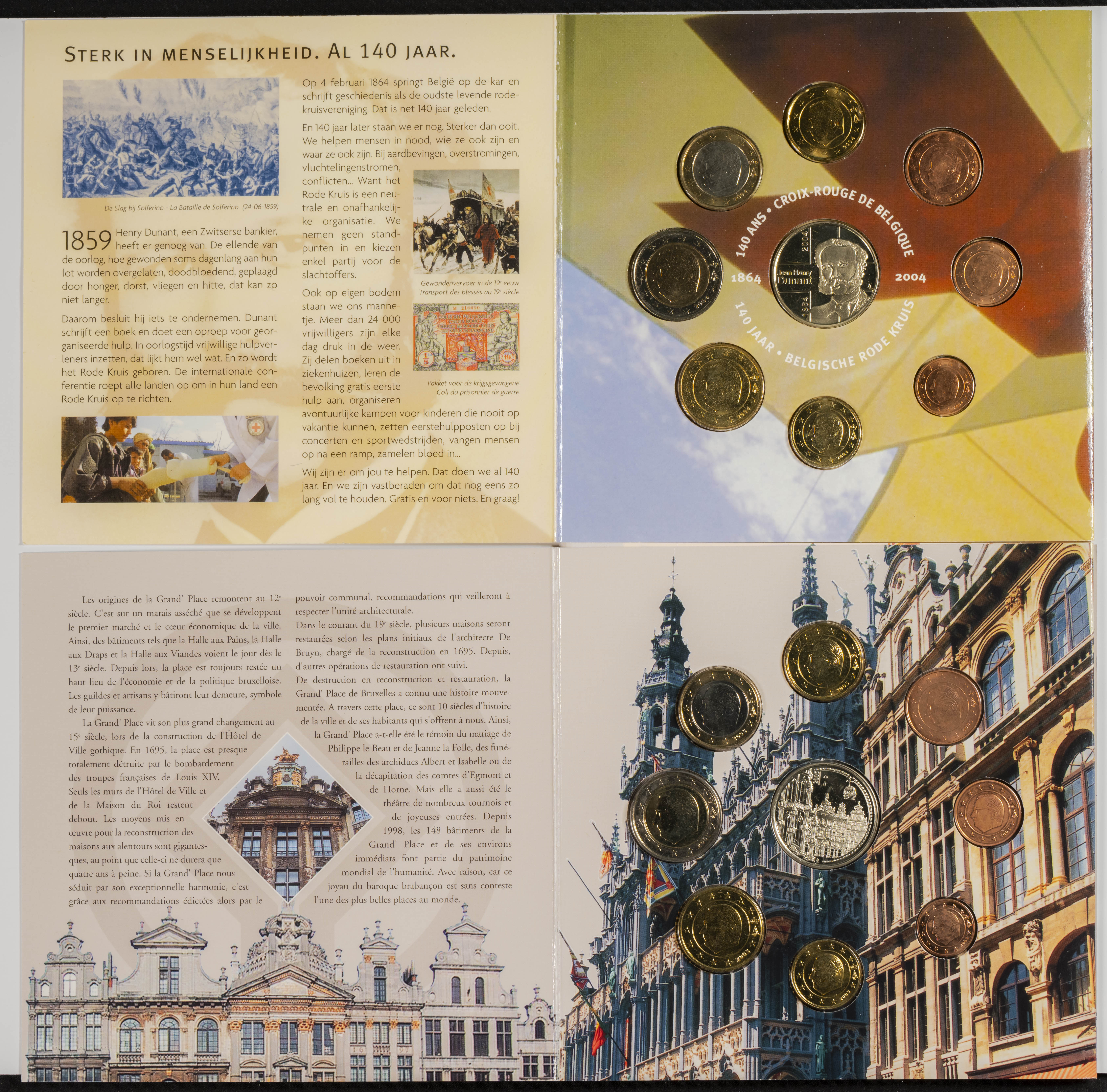 BÉLGICA. Conjunto de 15 sets emitidos desde 1999-2000 (últimos Francos) a 2007 (Euros). Series conmemorativas. Ninguna emisión repetida. SC.