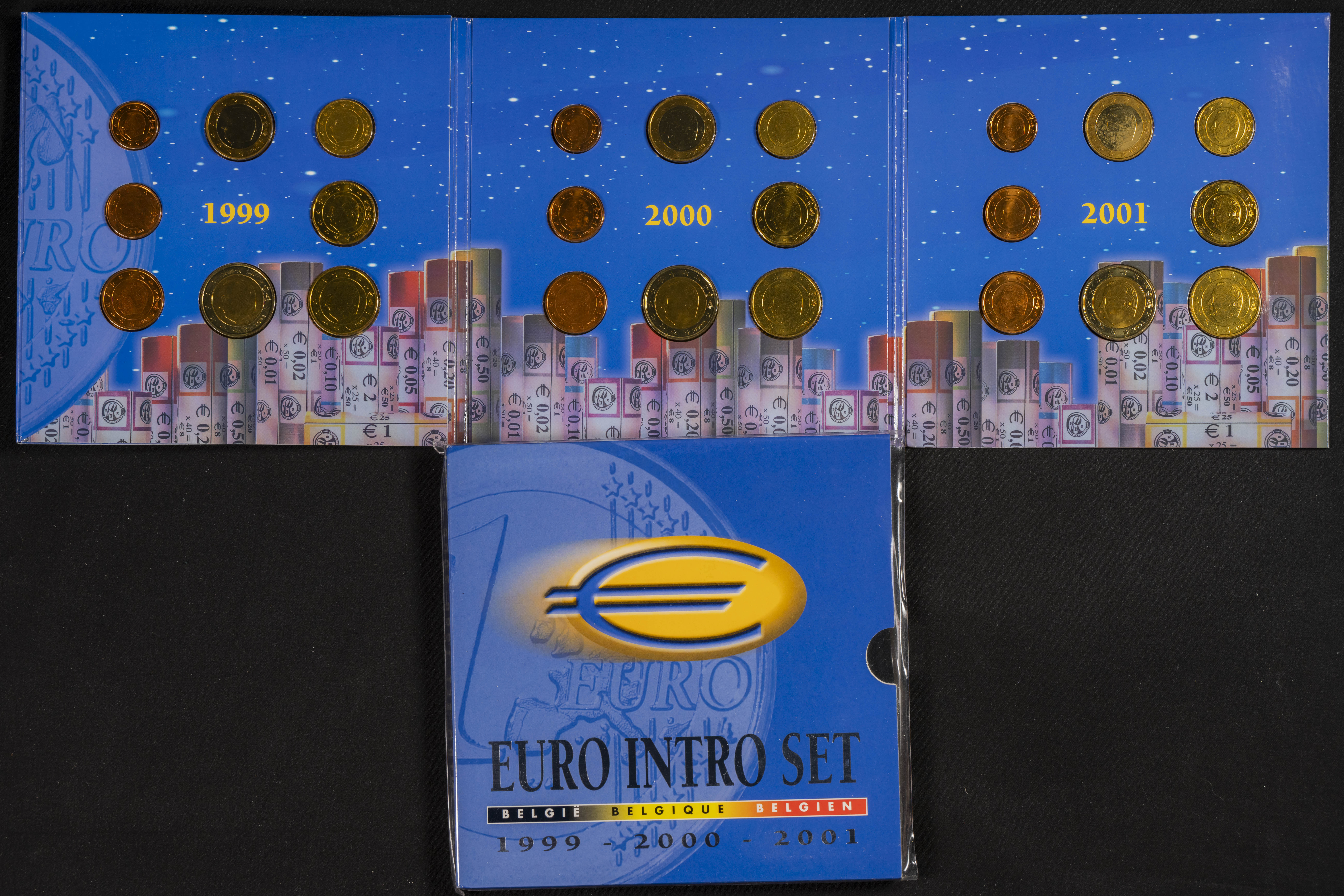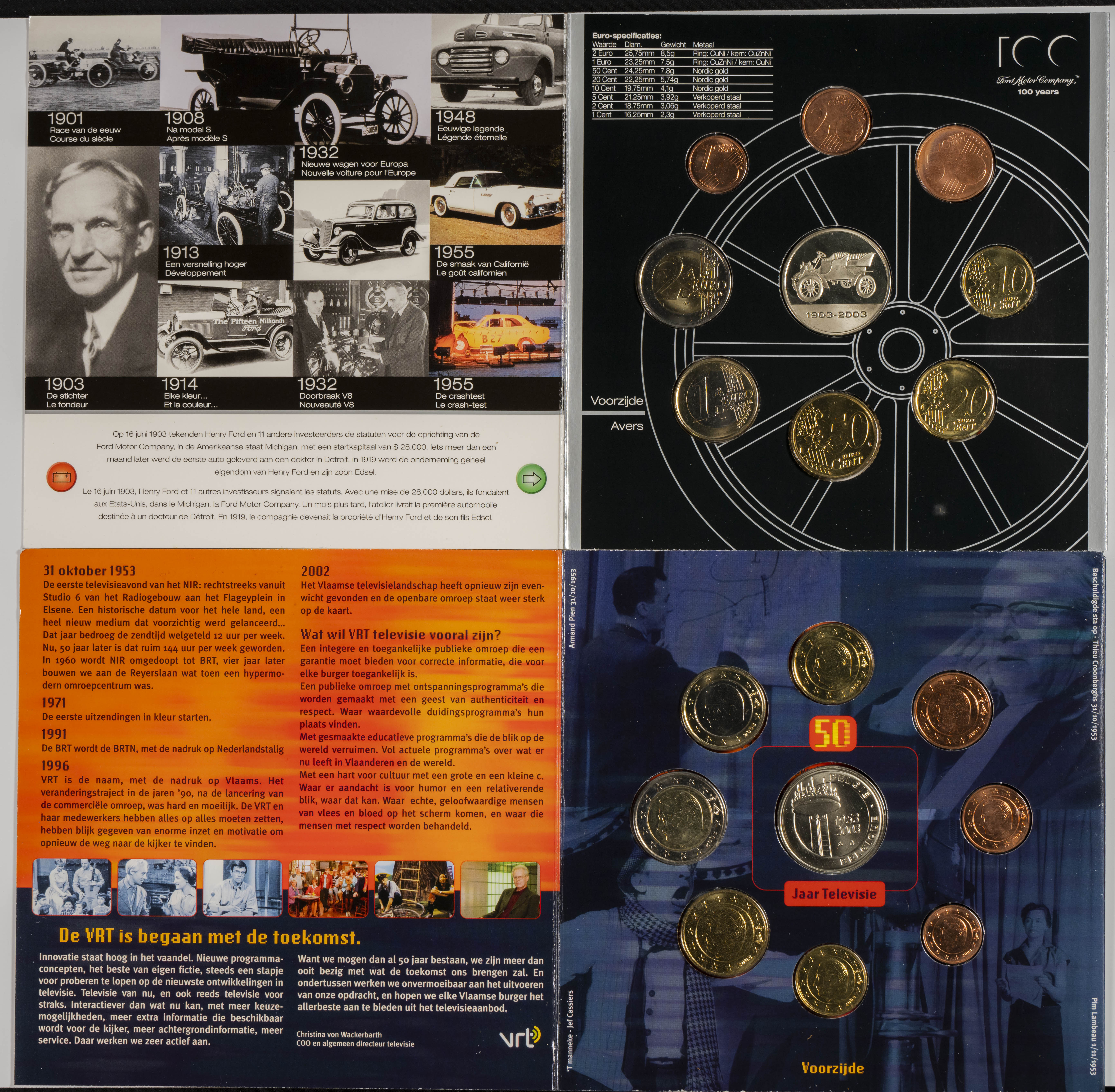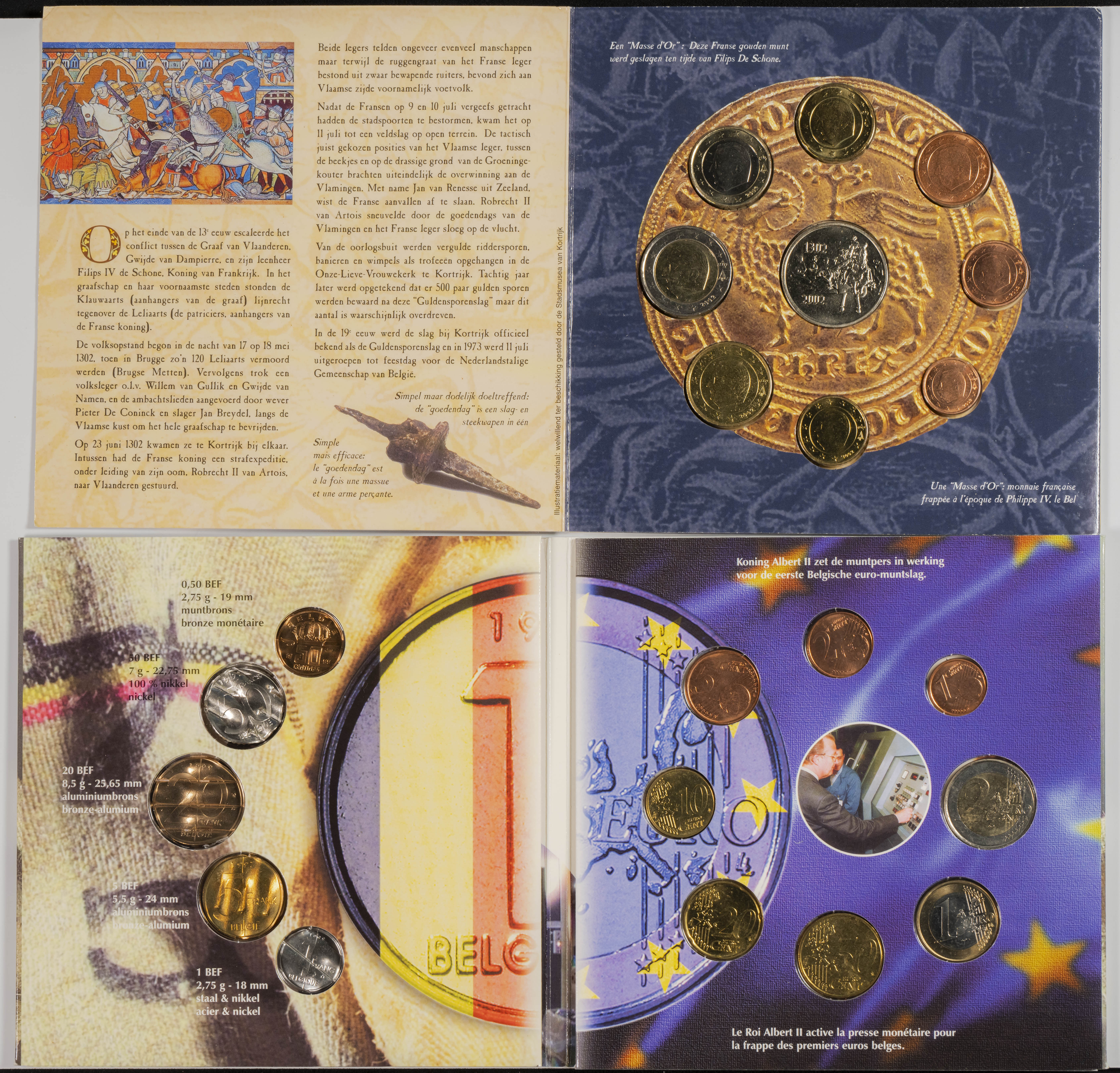 BÉLGICA. Conjunto de 15 sets emitidos desde 1999-2000 (últimos Francos) a 2007 (Euros). Series conmemorativas. Ninguna emisión repetida. SC.