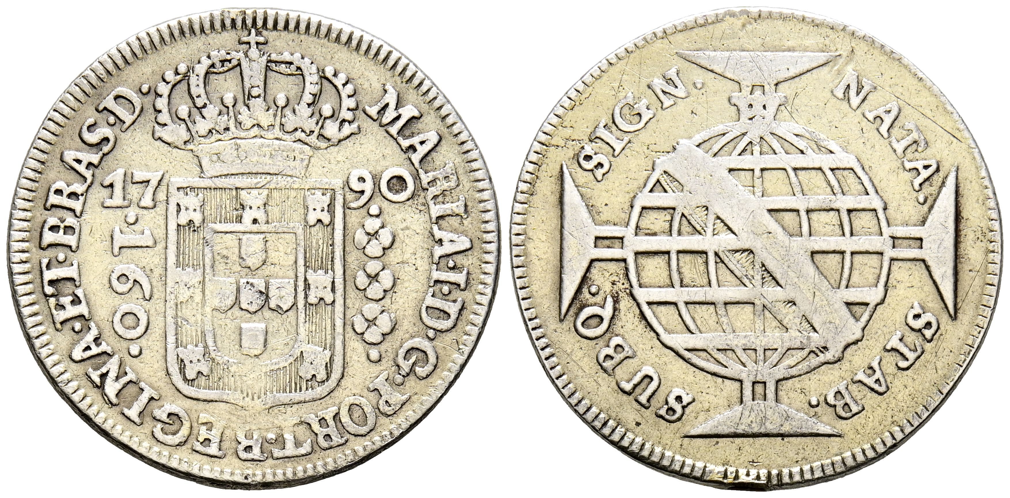 BRASIL, María I. 160 Reis. (Ar. 4,31g/25mm). 1790. (Km#220). MBC.