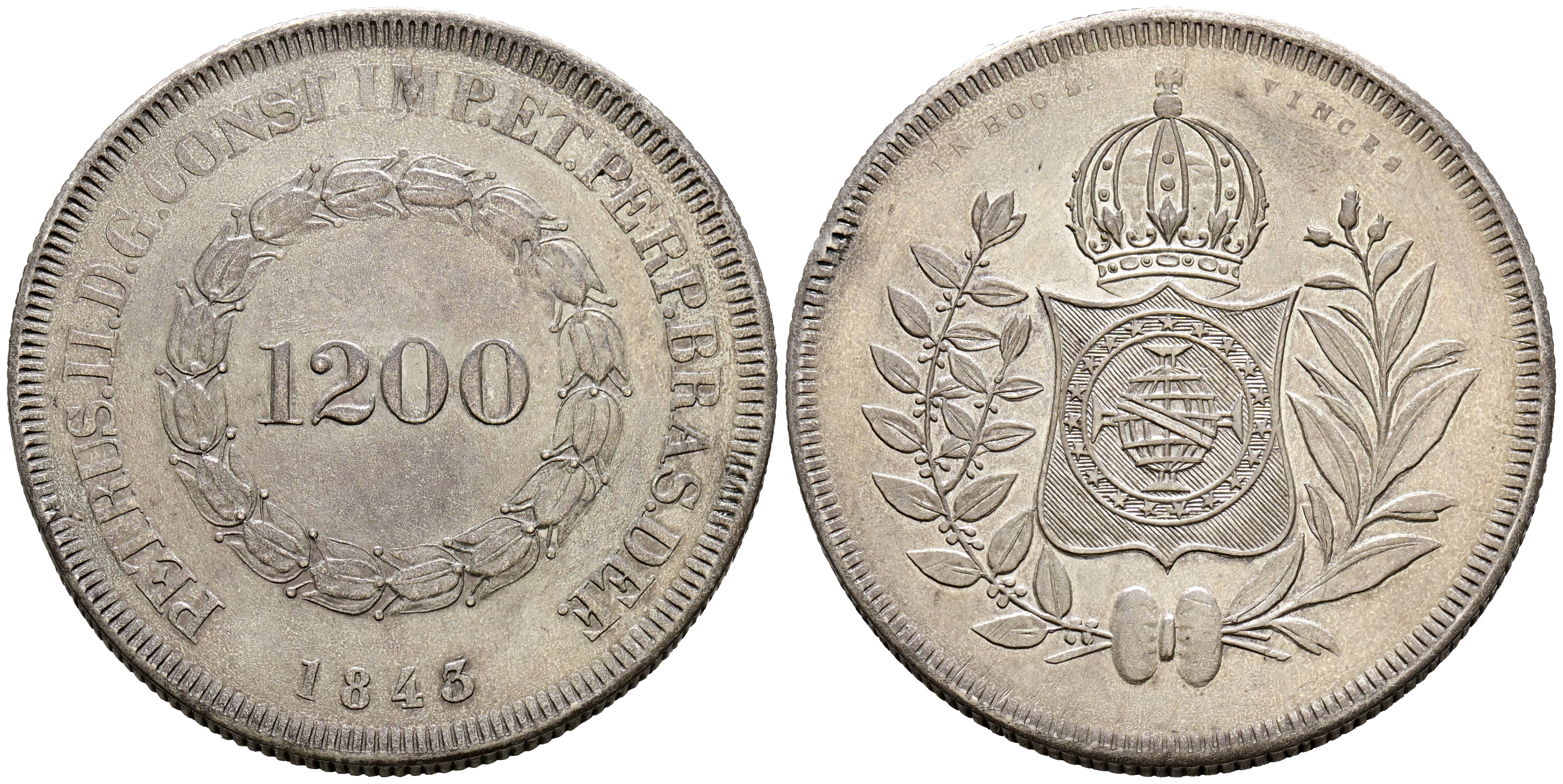 BRASIL, Pedro II. 1200 Reis. (Ar. 26,57g/37mm). 1843. (Km#454). MBC+. Escasa.