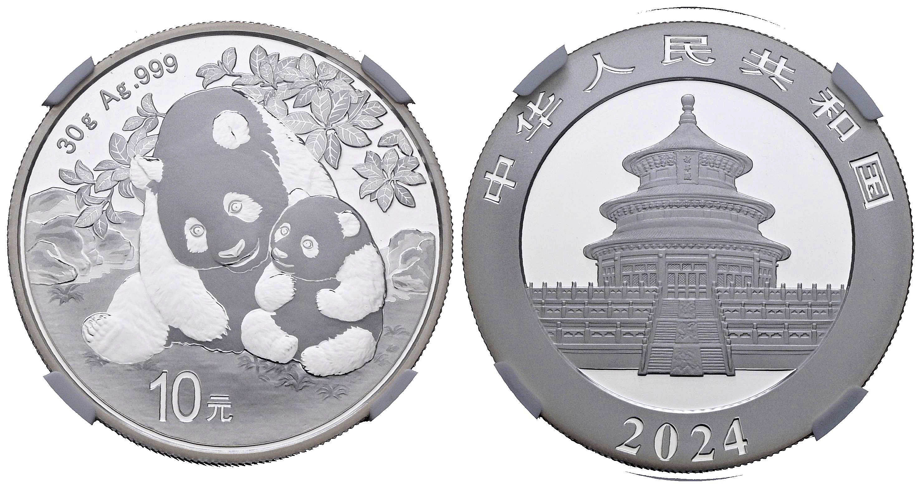 CHINA. 10 Yuan. (Ar. 30,00g/40mm)*. 2024. Serie Panda. Encapsulado por NGC MS 70, Early Releases. *Peso y medidas teóricos.