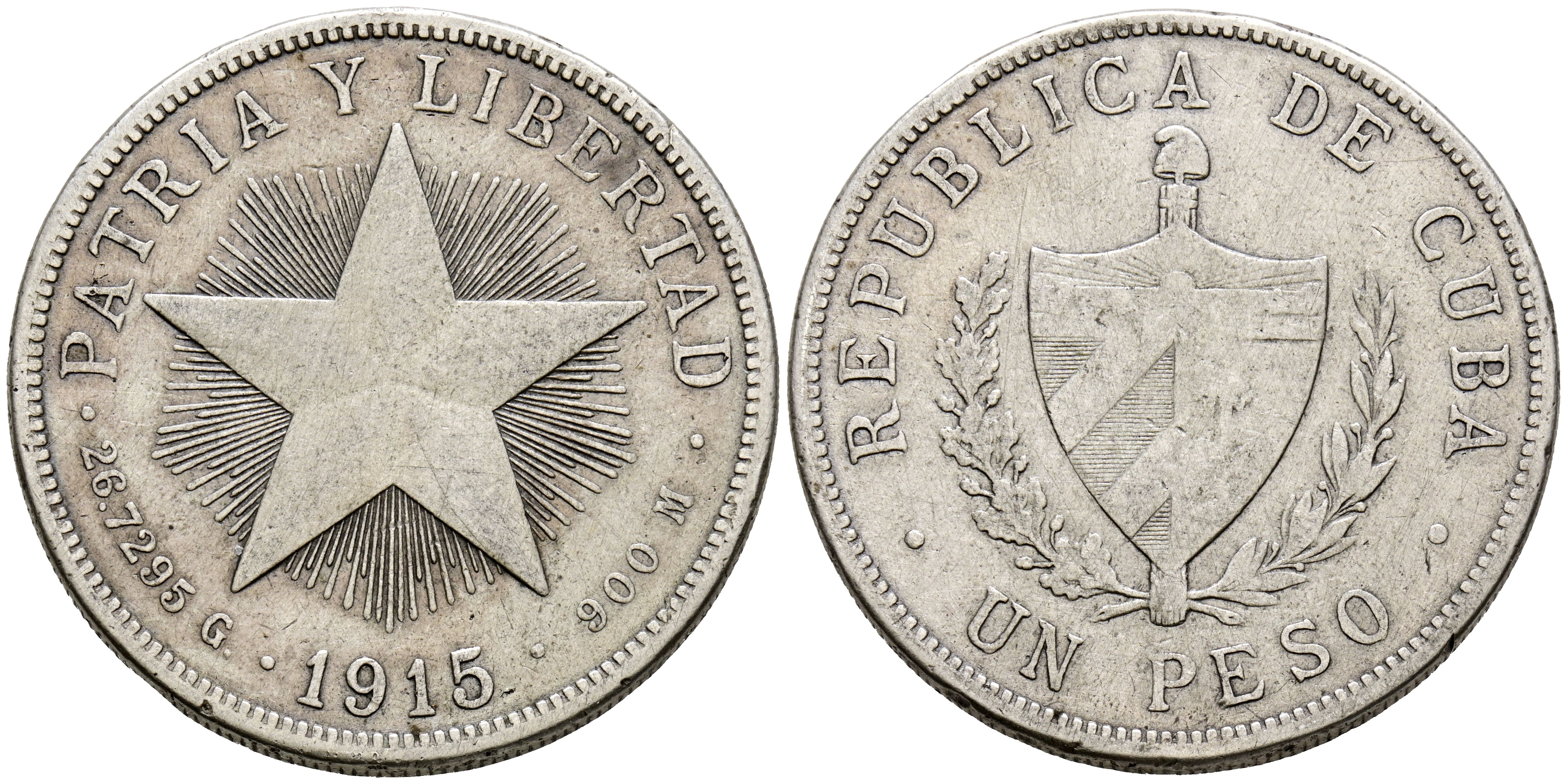 CUBA. 1 Peso. (Ar. 26,13g/38mm). 1915. (Km#15.2). MBC-.