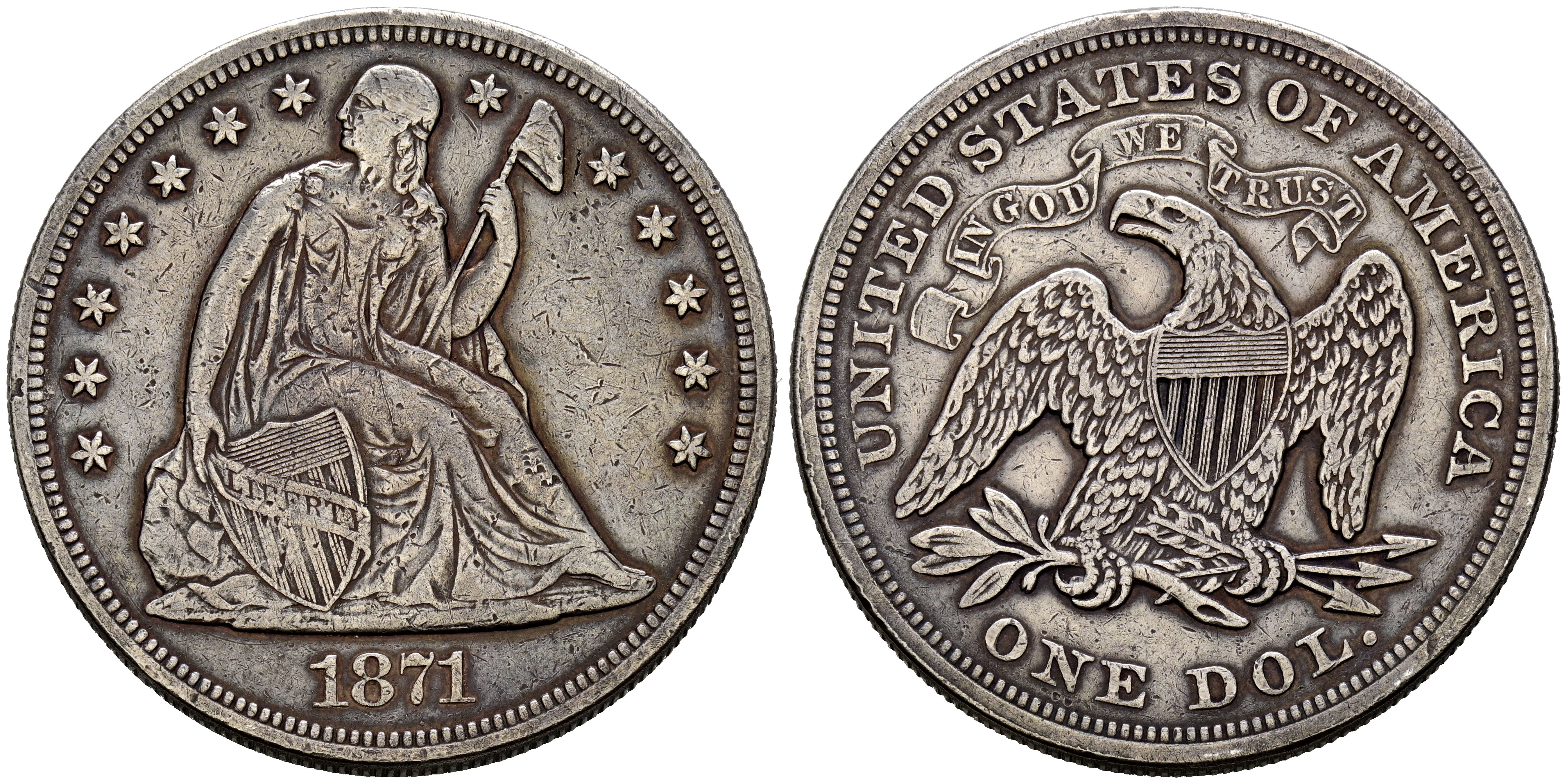 ESTADOS UNIDOS. 1 Dollar. (Ar. 26,76g/38mm). 1871. Philadelphia. (Km#100). MBC.