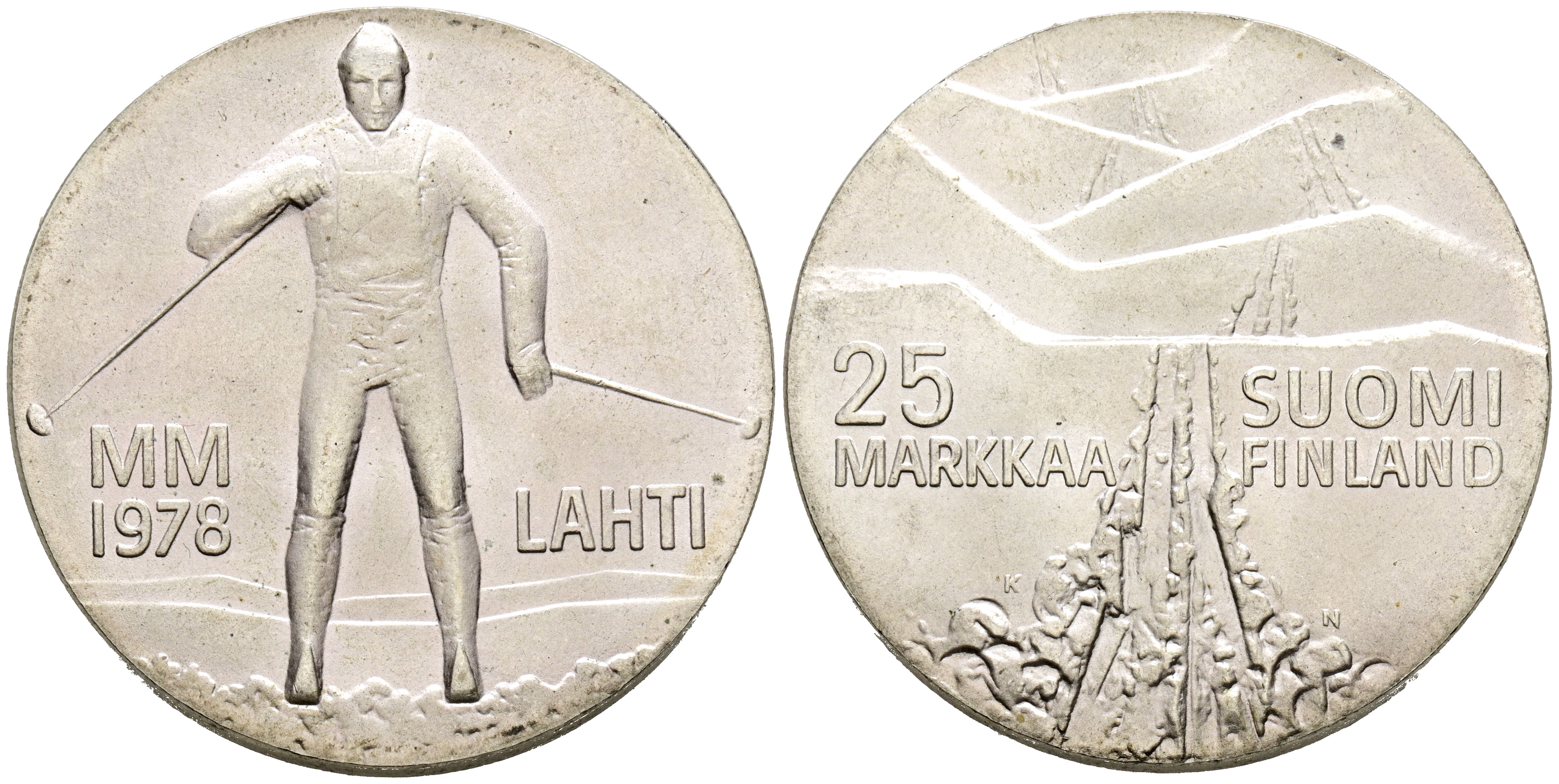 FINLANDIA. 25 Markkaa. (Ar. 26,54g/37mm). 1978. Juegos de Invierno. (Km#56). EBC+.
