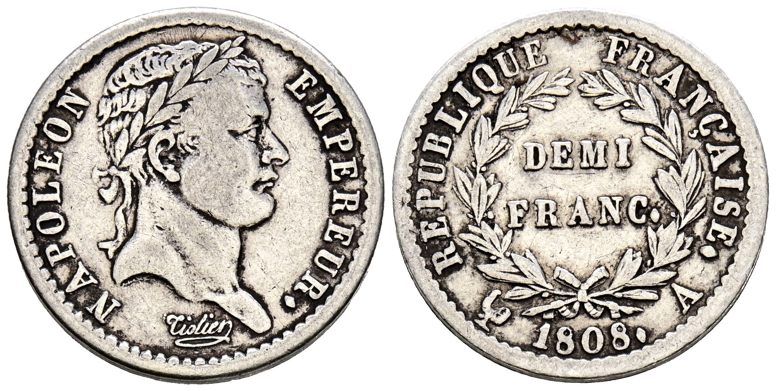 FRANCIA. 1/2 Franco. (Ar. 2,58g/18mm). 1808. Napoleón I. París A. (Km#680.1). MBC.