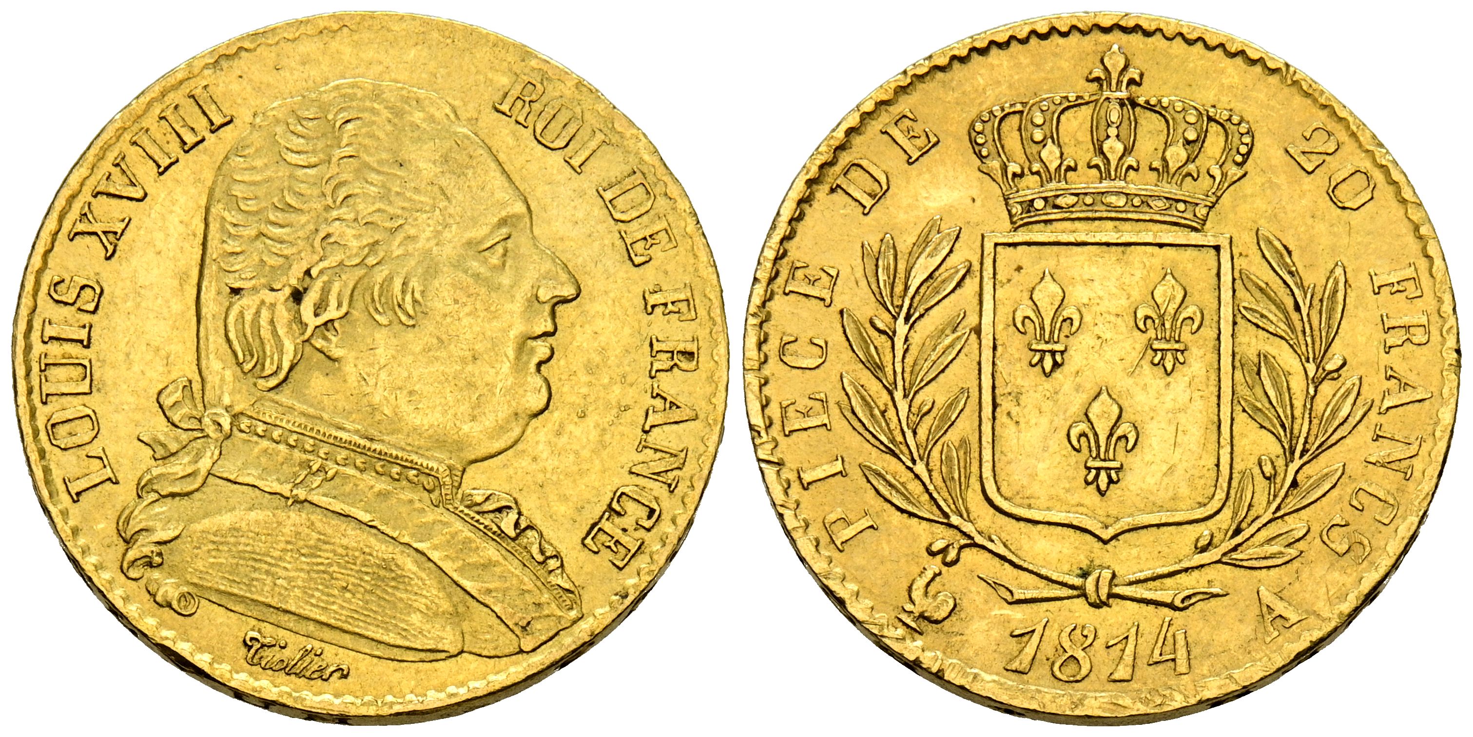 FRANCIA, Luis XVIII. 20 Francos. (Au. 6,43g/21mm). 1814. París A. (Km#706.1). MBC+.